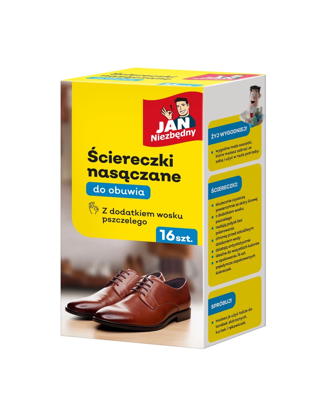 Ściereczki nasączane Jan Niezbędny to idealne rozwiązanie, które czyści, pielęgnuje i chroni skórzaną galanterię w zaledwie kilka sekund! Dzięki nim Twoje buty, torebki czy kurtki zawsze będą wyglądać jak nowe – bez potrzeby polerowania.