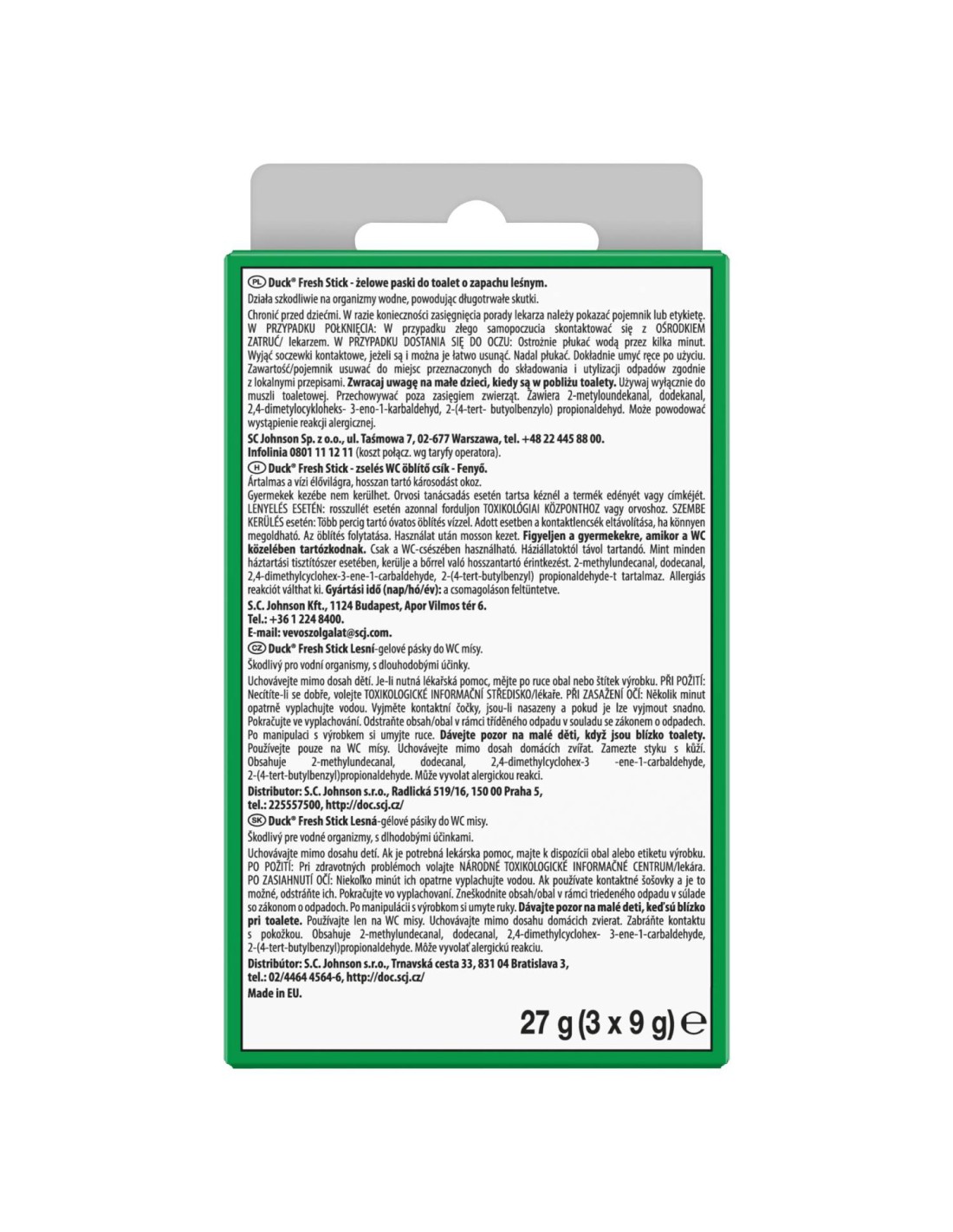 Żelowe paski do toalety o zapachu leśnym Duck Fresh Stick 3x9g