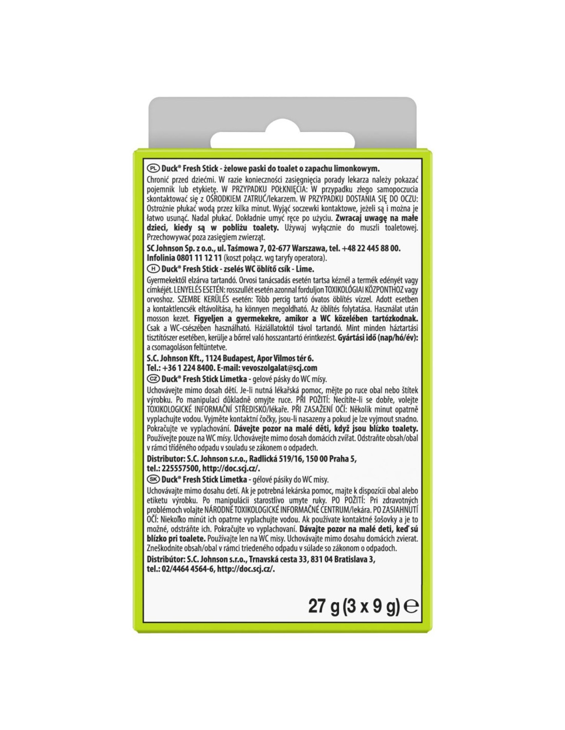 Limonkowe paski żelowe do toalet Duck Fresh Stick 3x9g