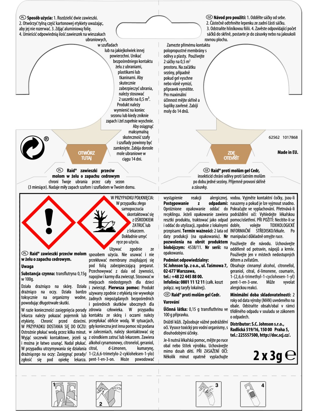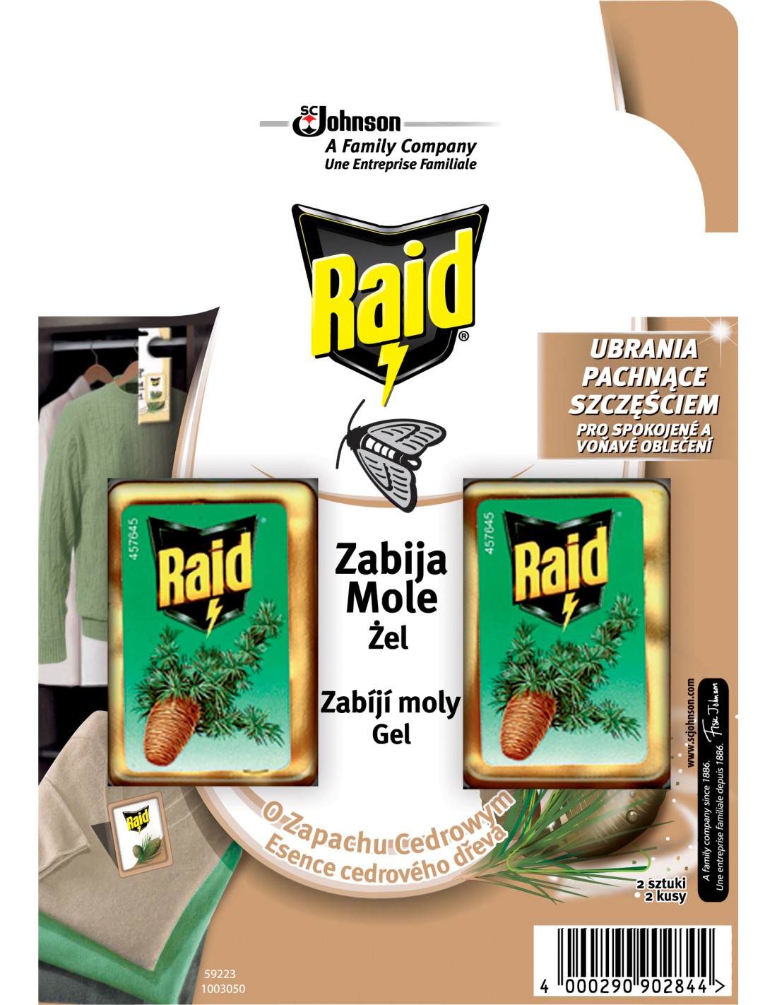 Raid zawieszki przeciw molom w żelu o zapachu cedrowym chronią Twoje ubrania przez cały sezon (3 miesiące).