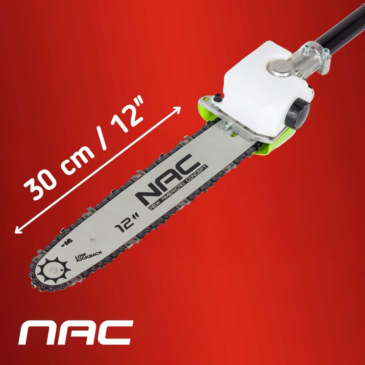 ▶️ Zintegrowana pilarka łańcuchowa z prowadnicą o długości 30 cm (12”) to niezastąpione narzędzie do okrzesywania i przycinania gałęzi nawet w trudno dostępnych miejscach.