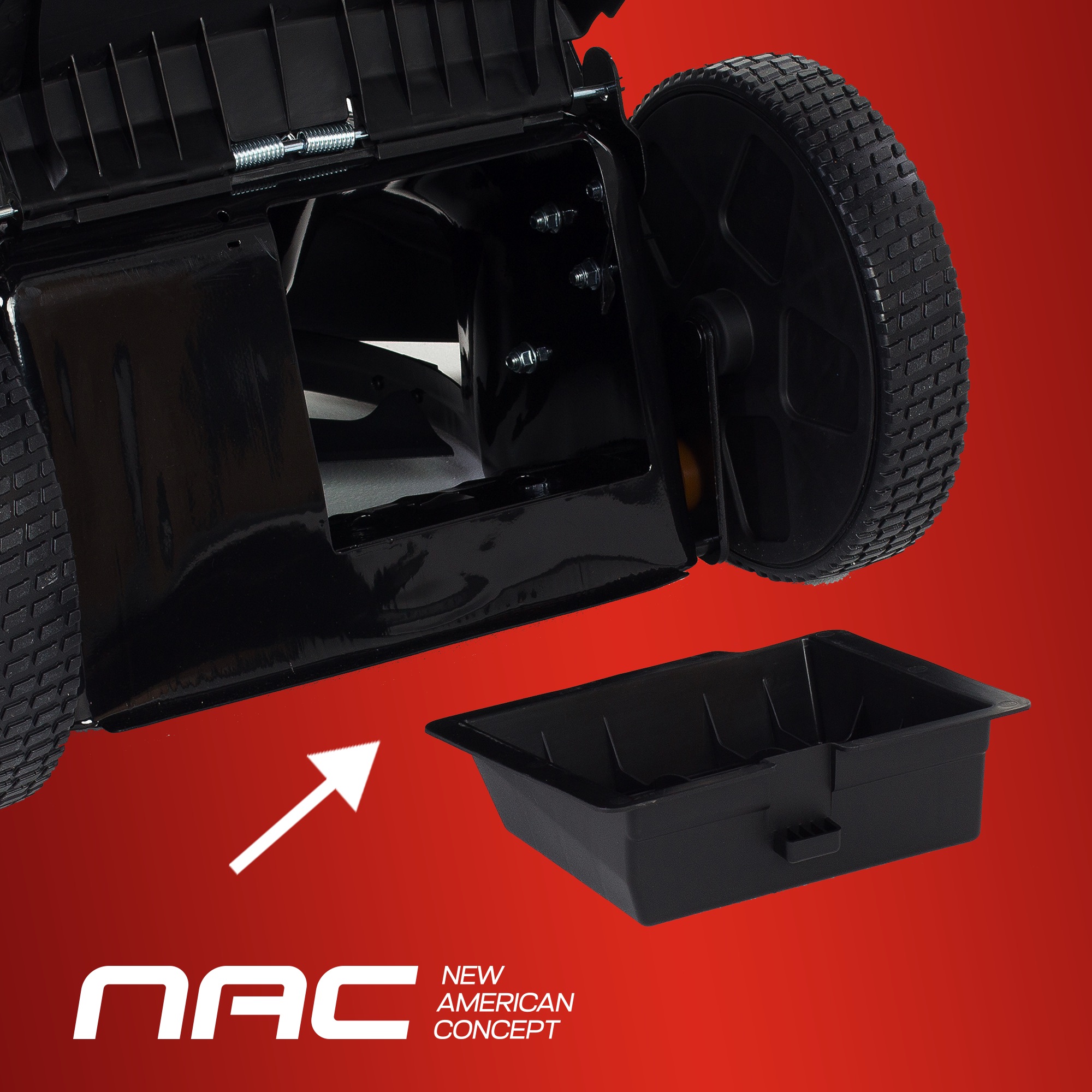 Kosiarka NAC LS46-173-HS-NG wyposażona jest w przystawkę do mulczowania, dzięki której skoszona trawa zostaje drobno rozdrobniona i równomiernie rozprowadzona na trawniku.