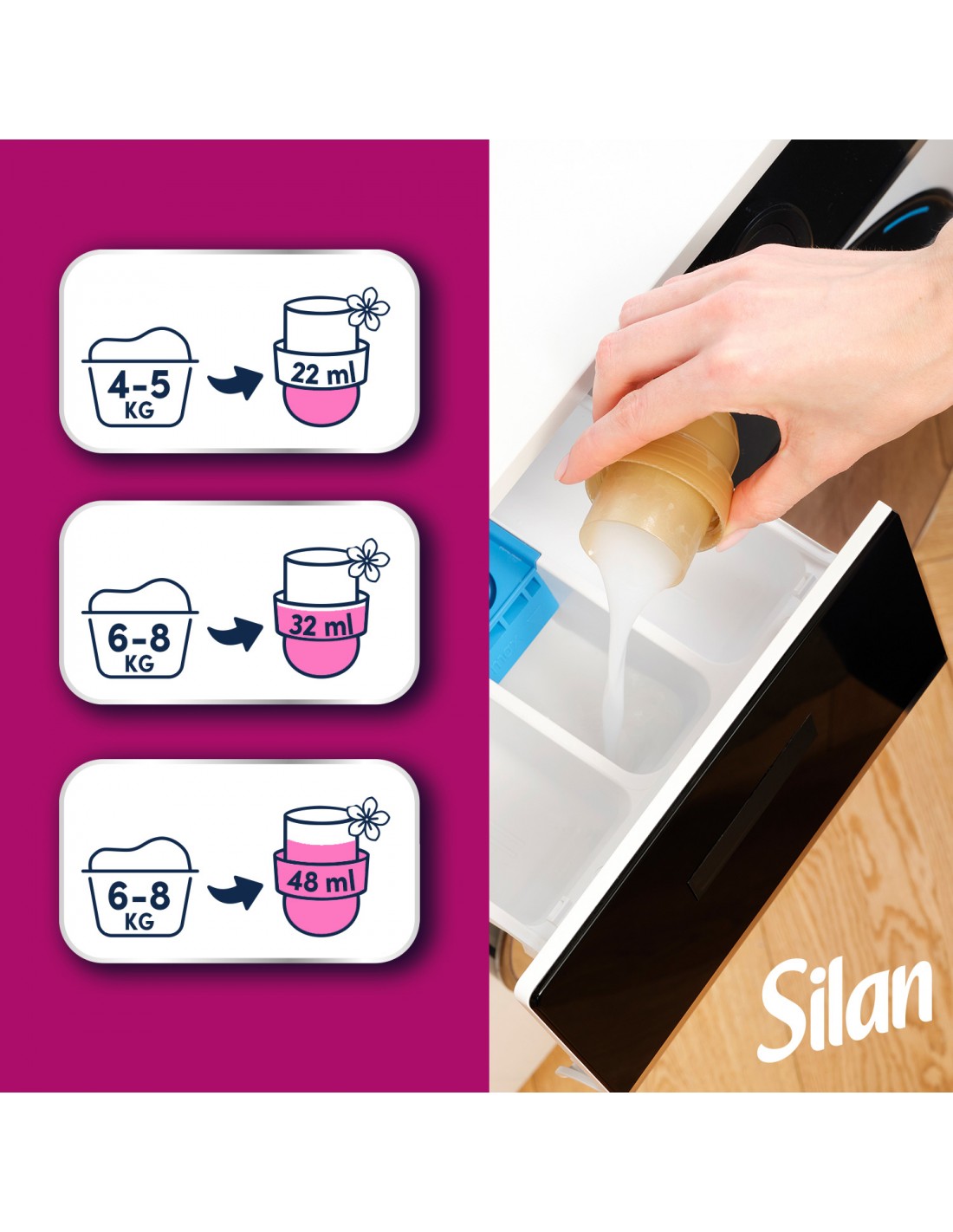 Nowa formuła Silan z olejkami eterycznymi nadaje Twoim ubraniom wyjątkowy, trwały zapach, jak nigdy dotąd. Kapsułki zawarte w formule uwalniają świeżość przy każdym Twoim ruchu, dzięki czemu możesz cieszyć długotrwałą neutralizacją nieprzyjemnych zapachów przez cały dzień. Płyn do płukania tkanin Silan jest przeznaczony do wszystkich rodzajów tkanin i nie wpływa na oddychalność, strukturę i wodochłonność odzieży, dzięki czemu nie musisz martwić się o to, do jakich tkanin można go stosować. Używaj płynu Silan do każdego prania.