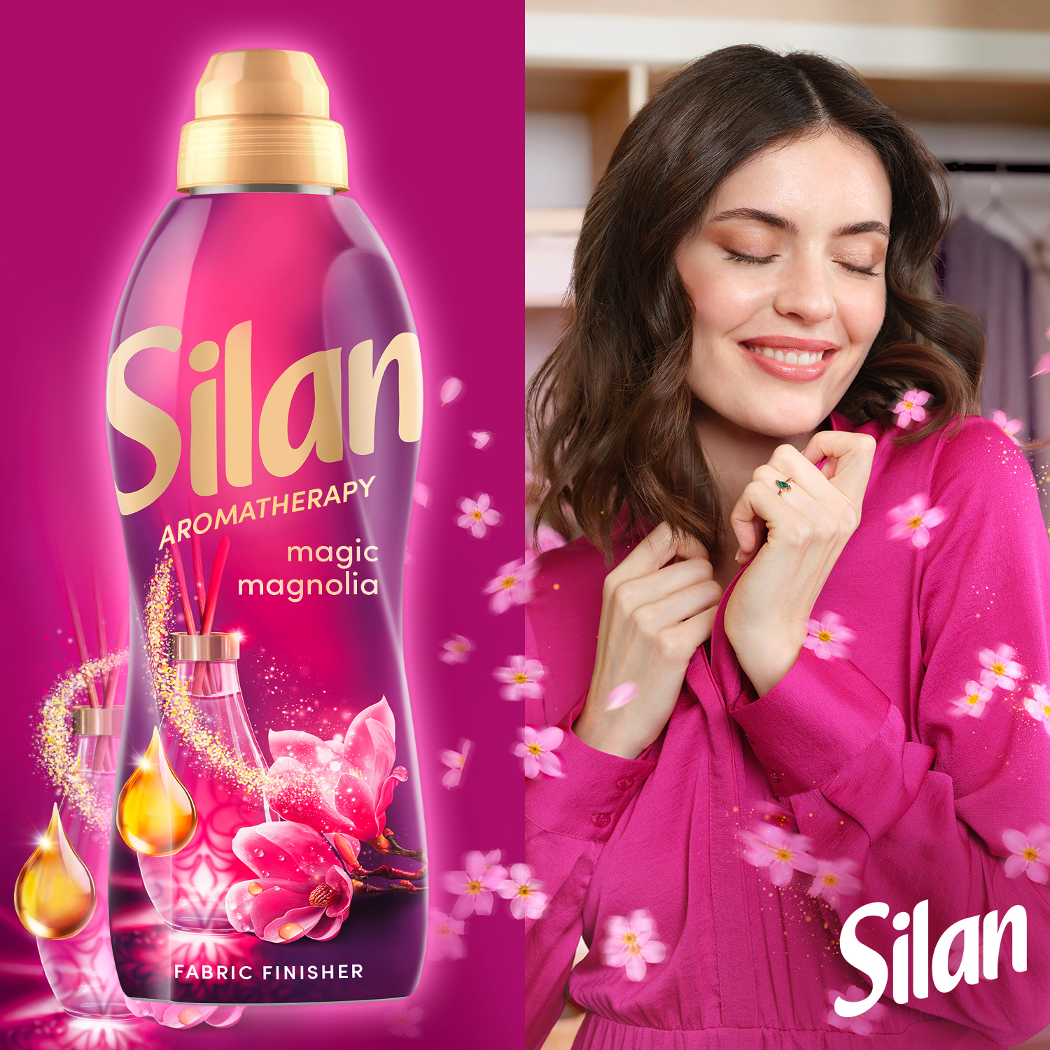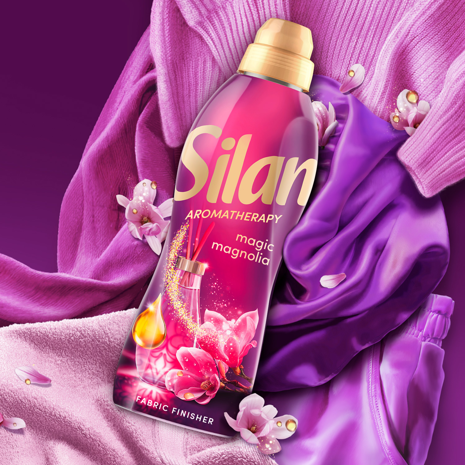 Dodaj do każdego prania nowy płyn do płukania tkanin: Silan Aromatherapy Magic Magnolia – teraz do wszystkich tkanin. Jego wyjątkowa formuła