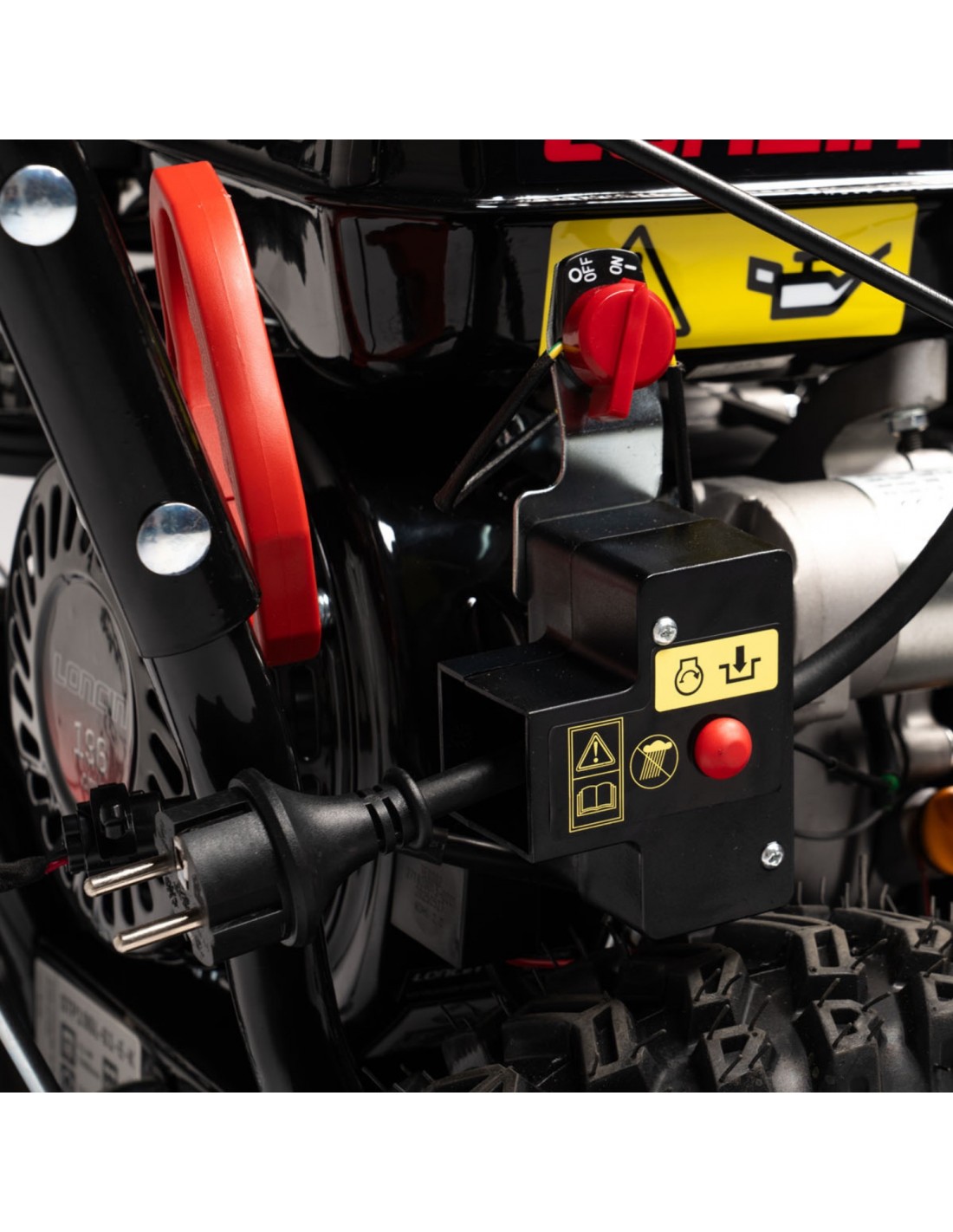 W urządzeniu, oprócz klasycznego rozruchu ręcznego, zastosowano dodatkowy rozrusznik elektryczny zasilany napięciem 230V. Odśnieżarka wyposażona jest w oświetlenie LED, które pozwala na pracę w warunkach o słabym oświetleniu.