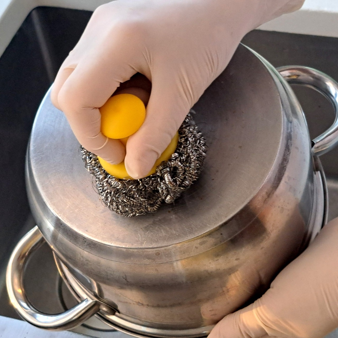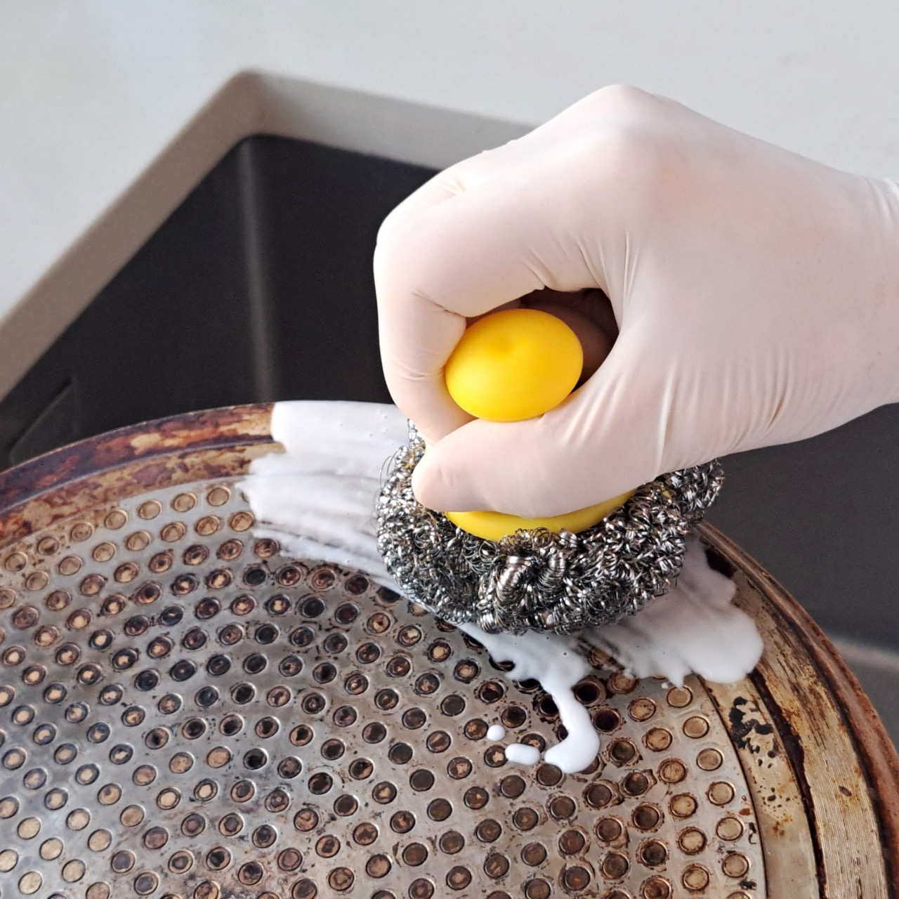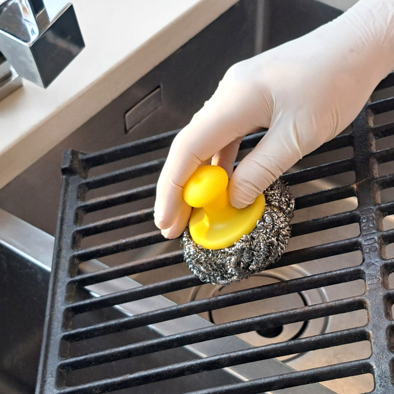 Druciak z uchwytem JAN Niezbędny to idealne rozwiązanie do usuwania trudnych zabrudzeń z grilla, patelni czy garnka.
