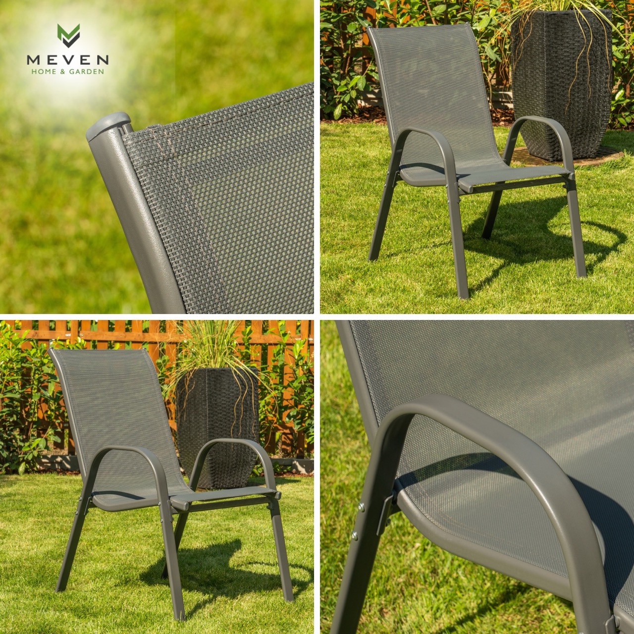 ❇️ Grafitowy odcień krzeseł Floryda MEVEN jest neutralny i harmonijnie współgra z różnorodnymi stylami aranżacji - zarówno nowoczesnymi, minimalistycznymi tarasami, jak i bardziej naturalnymi, zielonymi przestrzeniami ogrodu.