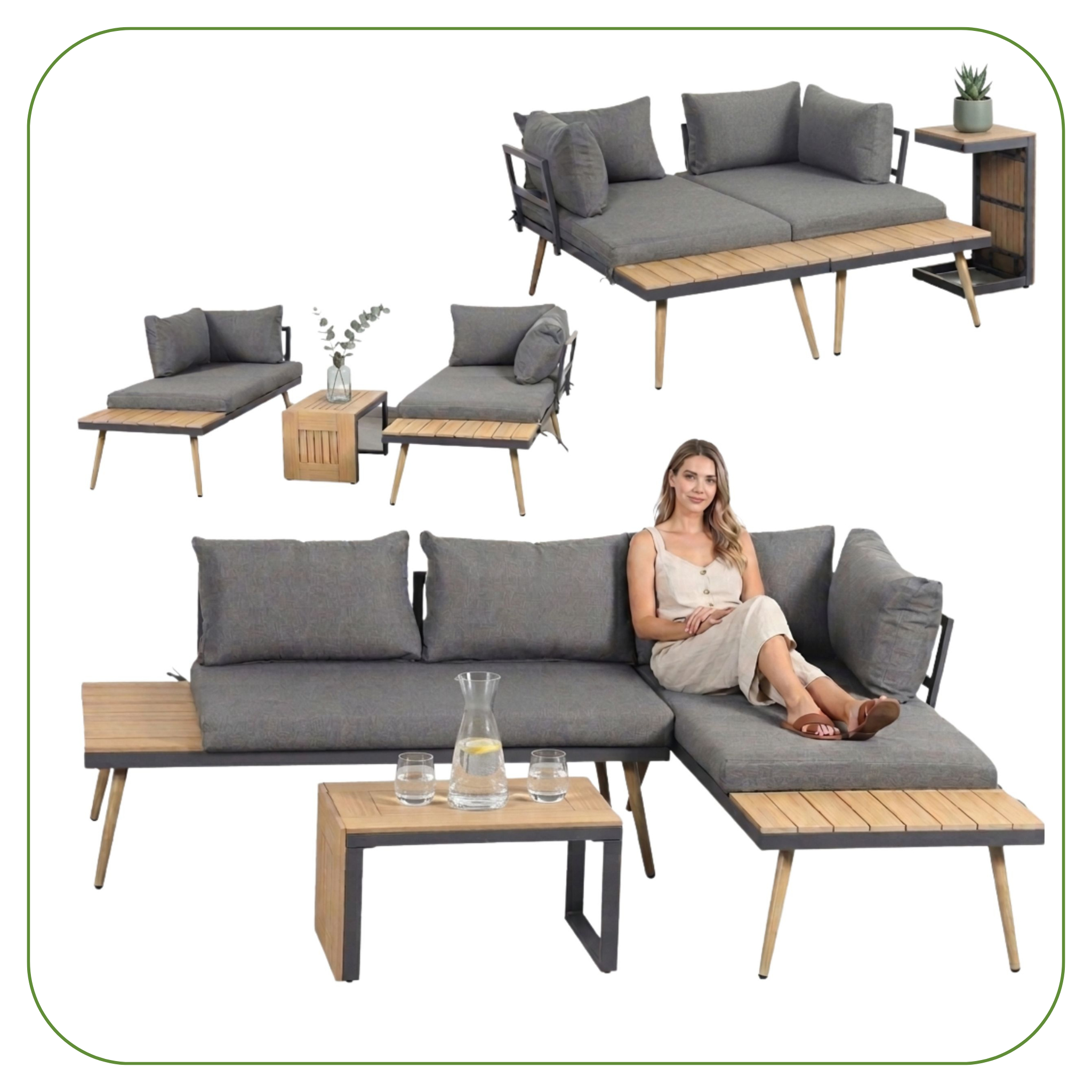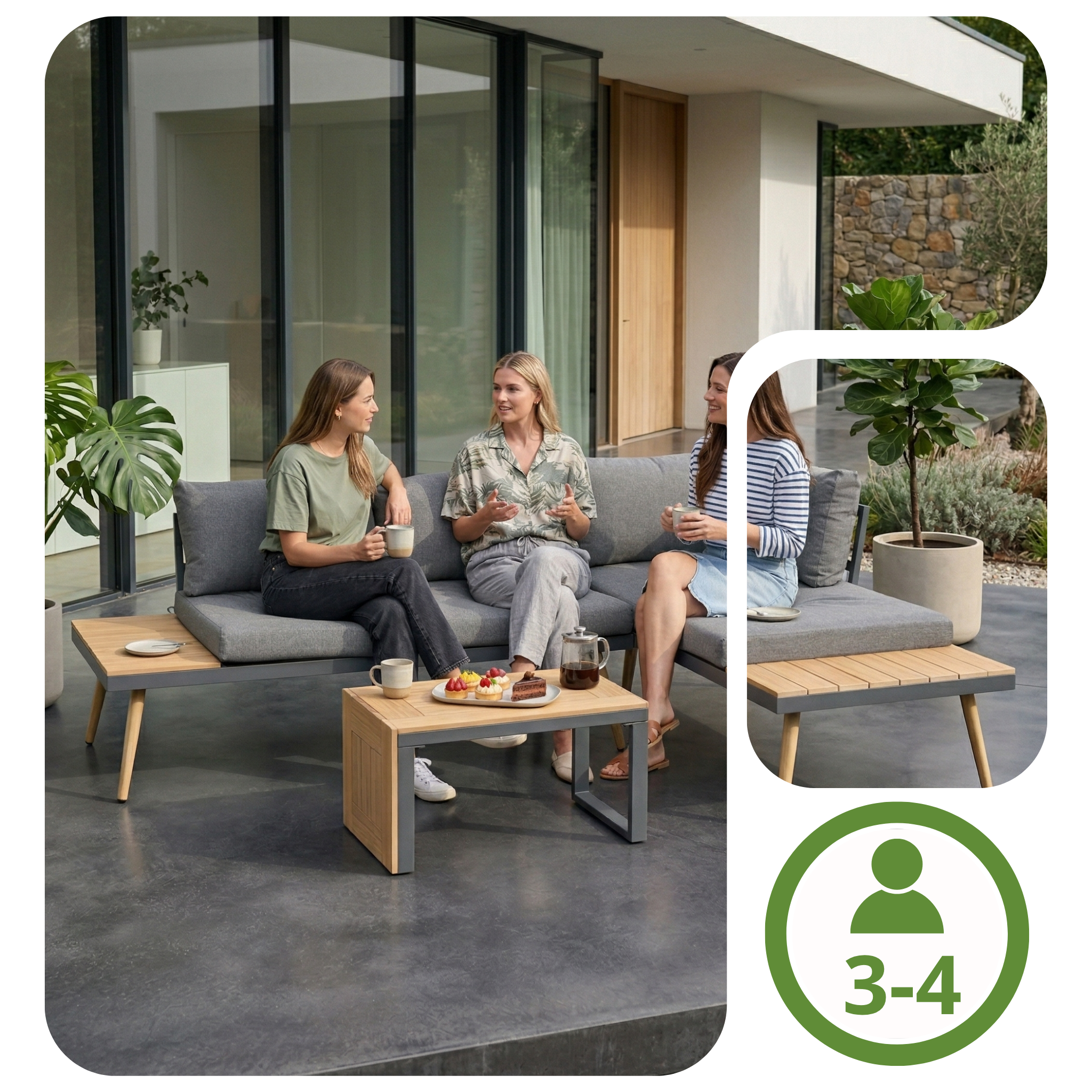 Zestaw mebli ogrodowych PALMA MEVEN daje Ci pełną swobodę aranżacji. Wystarczy chwila, by przekształcić go w jedną z trzech konfiguracji: