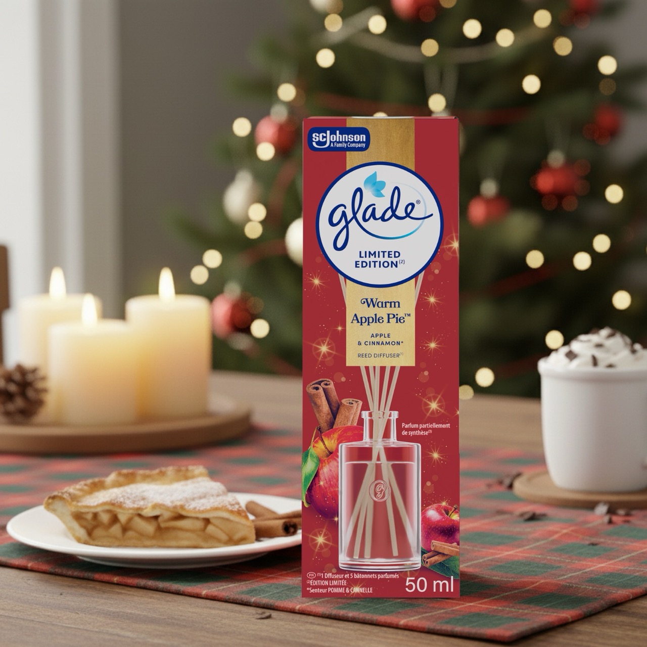 Zanurz się w magii świąt z nowym dyfuzorem patyczkowym Glade Reed Diffuser o zapachu Warm Apple Pie.