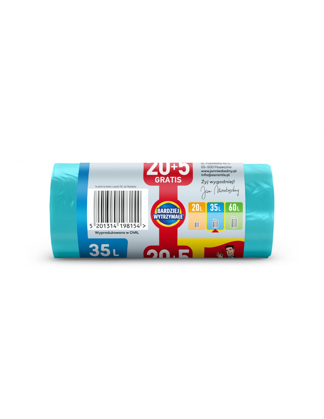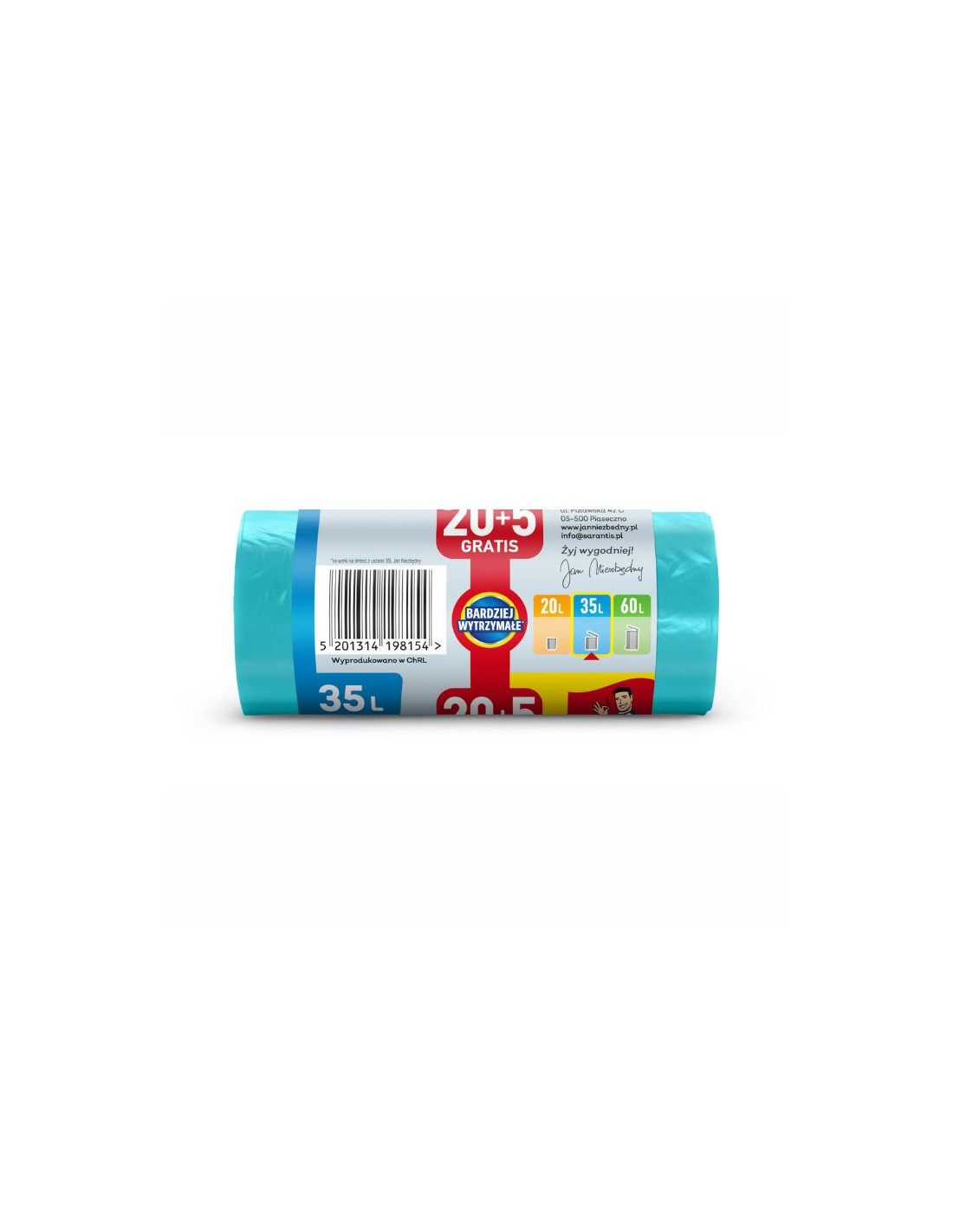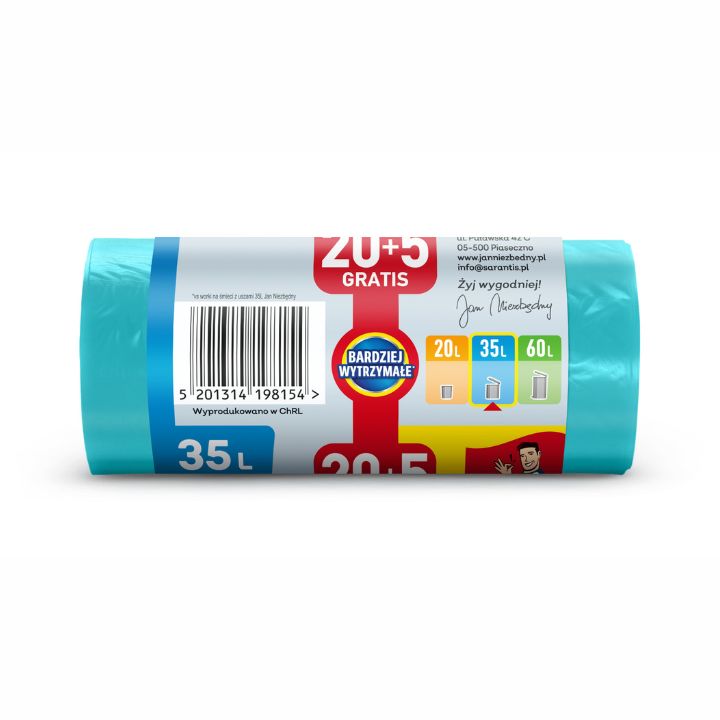 Dodatkowo na każdej etykiecie worka znajduje się nadruk z informacją o jego litrażu, ilości sztuk w rolce oraz wymiarach worka.