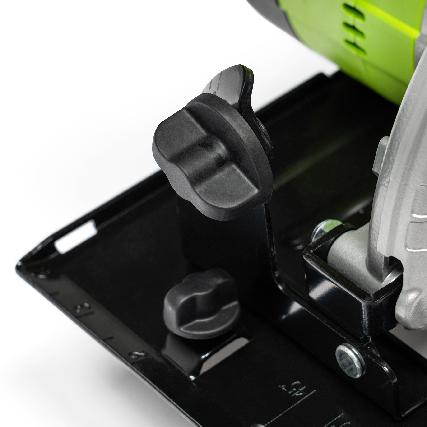 Śruby skrzydełkowe i czytelne skale pozwalają błyskawicznie ustawić głębokość do 55 mm przy 90° oraz 36 mm przy 45°.