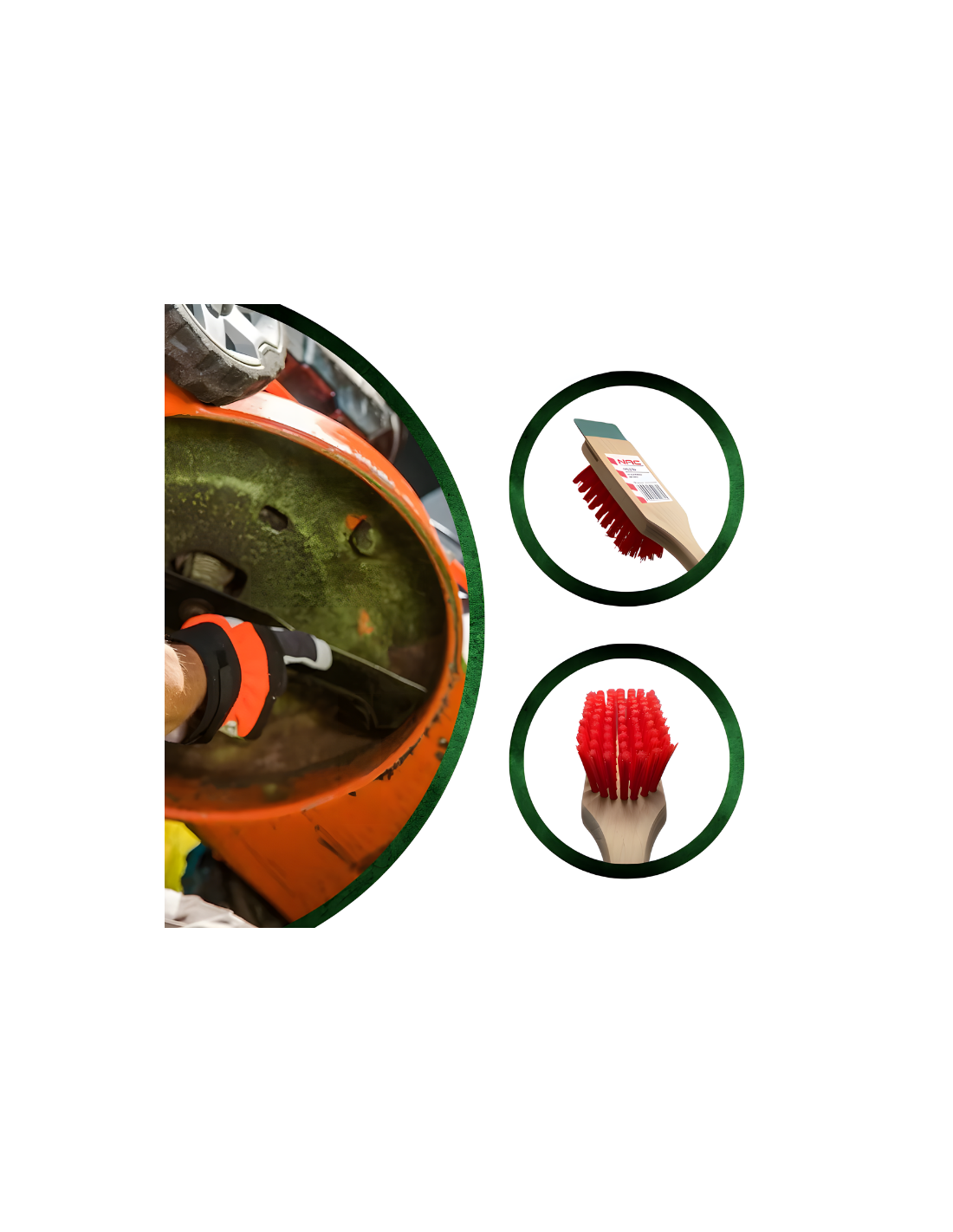 ☑️ Dzięki sztywnemu, 3 cm włosiu szczotka łatwo usuwa zaschniętą trawę i uporczywy brud z ciasnych zakamarków.