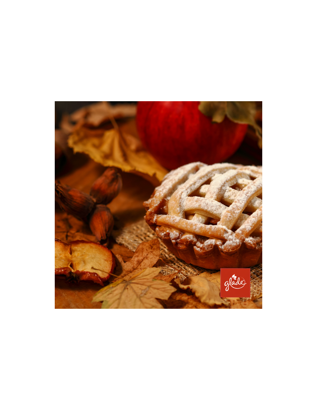 Popraw sobie nastrój dzięki modświeżaczowi powietrza Glade® Warm Apple Pie™. Zapach Glade® Warm Apple Pie™ przenosi Cię w magiczny świat przytulnej atmosfery, gdzie mieszanka świeżych jabłek oraz cynamonu tworzy niepowtarzalne doświadczenie zmysłowe.
