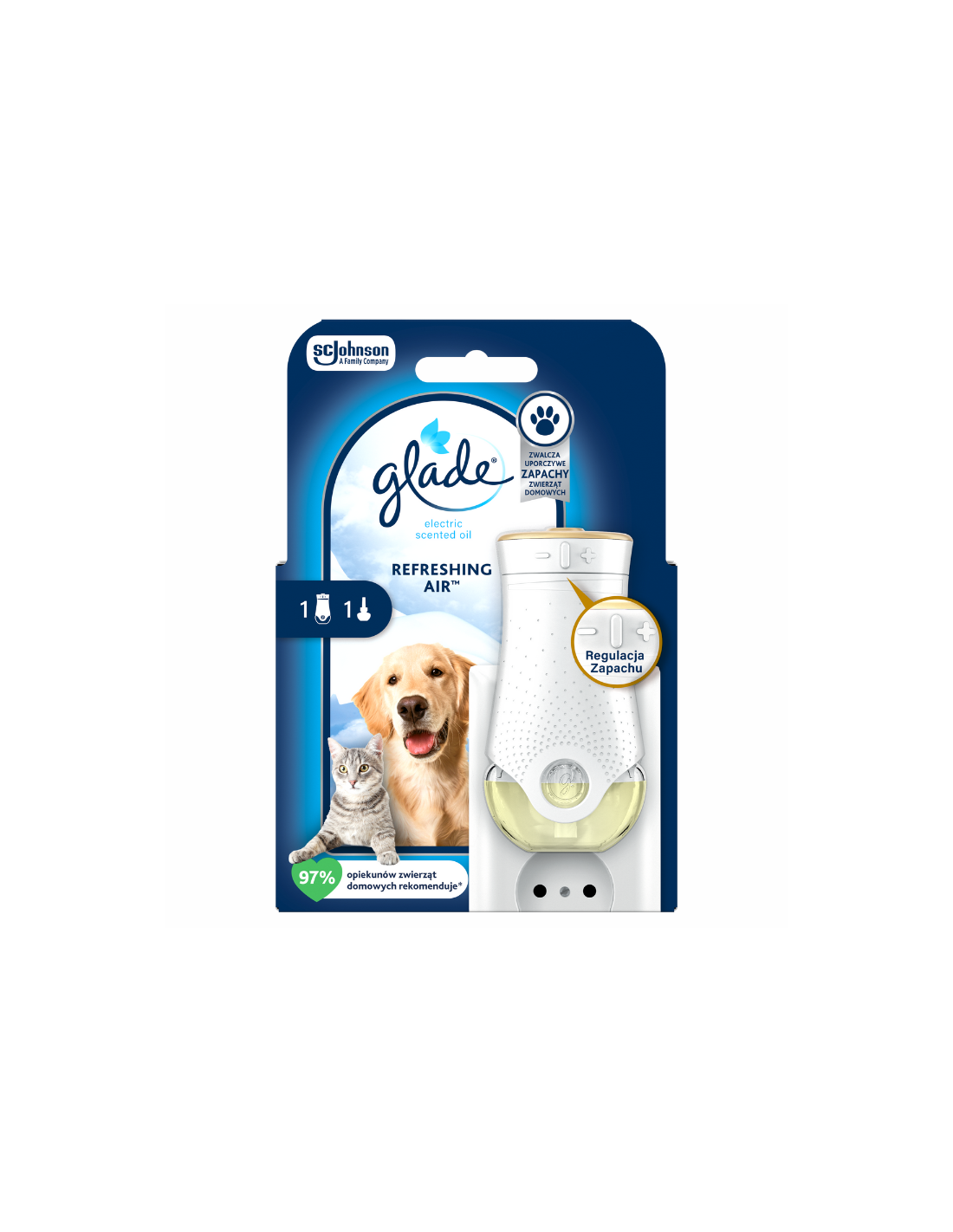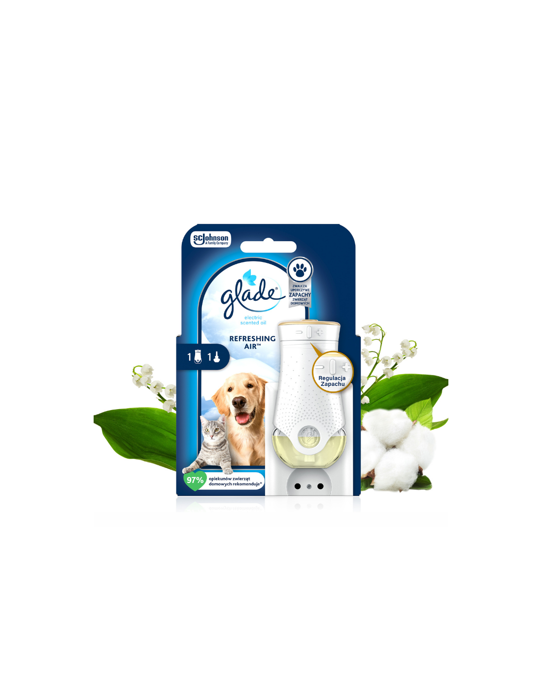 Glade® PETS Electric scented oil - Refreshing Air - elektryczny odświeżacz powietrza stworzony specjalnie dla właścicieli zwierząt.