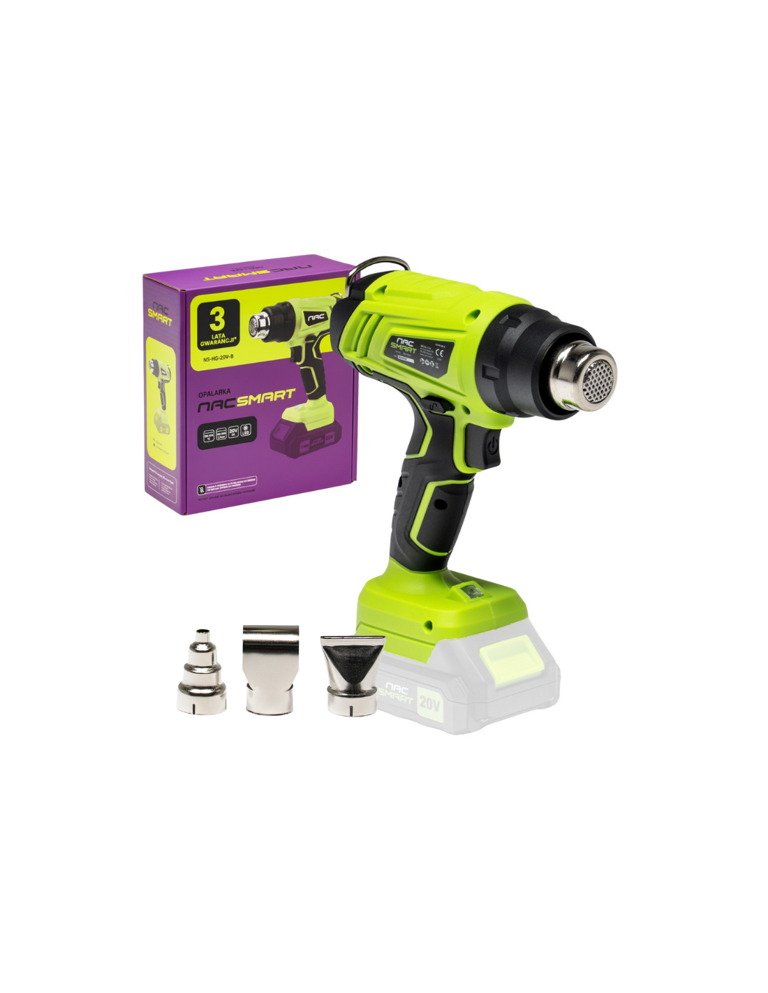 Akumulatorowa opalarka NAC SMART NS-HG-20V-B łączy lekką konstrukcję 0,53 kg z precyzyjną regulacją temperatury i przepływu powietrza.