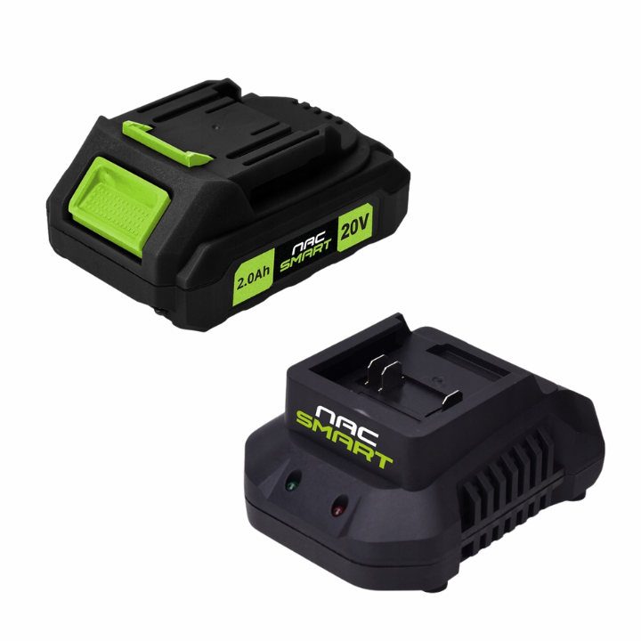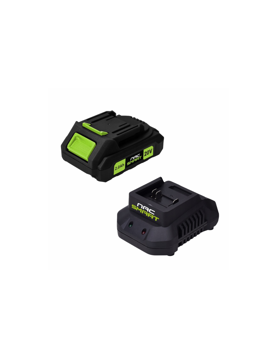 Otwórz drzwi do świata, w którym wszystko do siebie pasuje. Ten zestaw rozpoczyna Twoją przygodę z ekosystemem NAC SMART 20V. Akumulator 2.0 Ah i szybka ładowarka (gotowość do pracy w 90 minut!) stają się Twoją bazą.