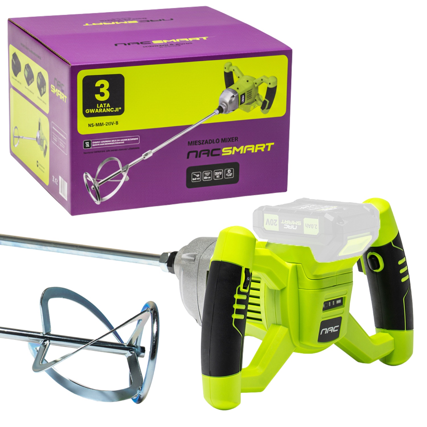 Nowoczesne mieszadło akumulatorowe dla wymagających. NAC SMART NS-MM-20V-B zapewnia pełną mobilność, wysoką wydajność i komfort pracy w każdych warunkach - sprawdza się zarówno przy domowych remontach, jak i na profesjonalnych budowach.