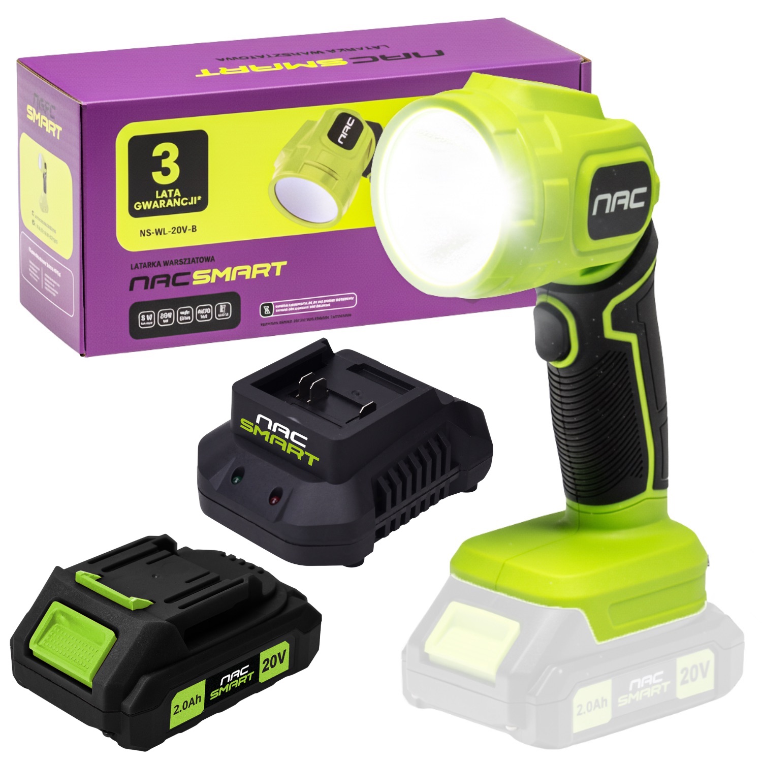 Akumulatorowa latarka warsztatowa NAC SMART NS-WL-20V-B