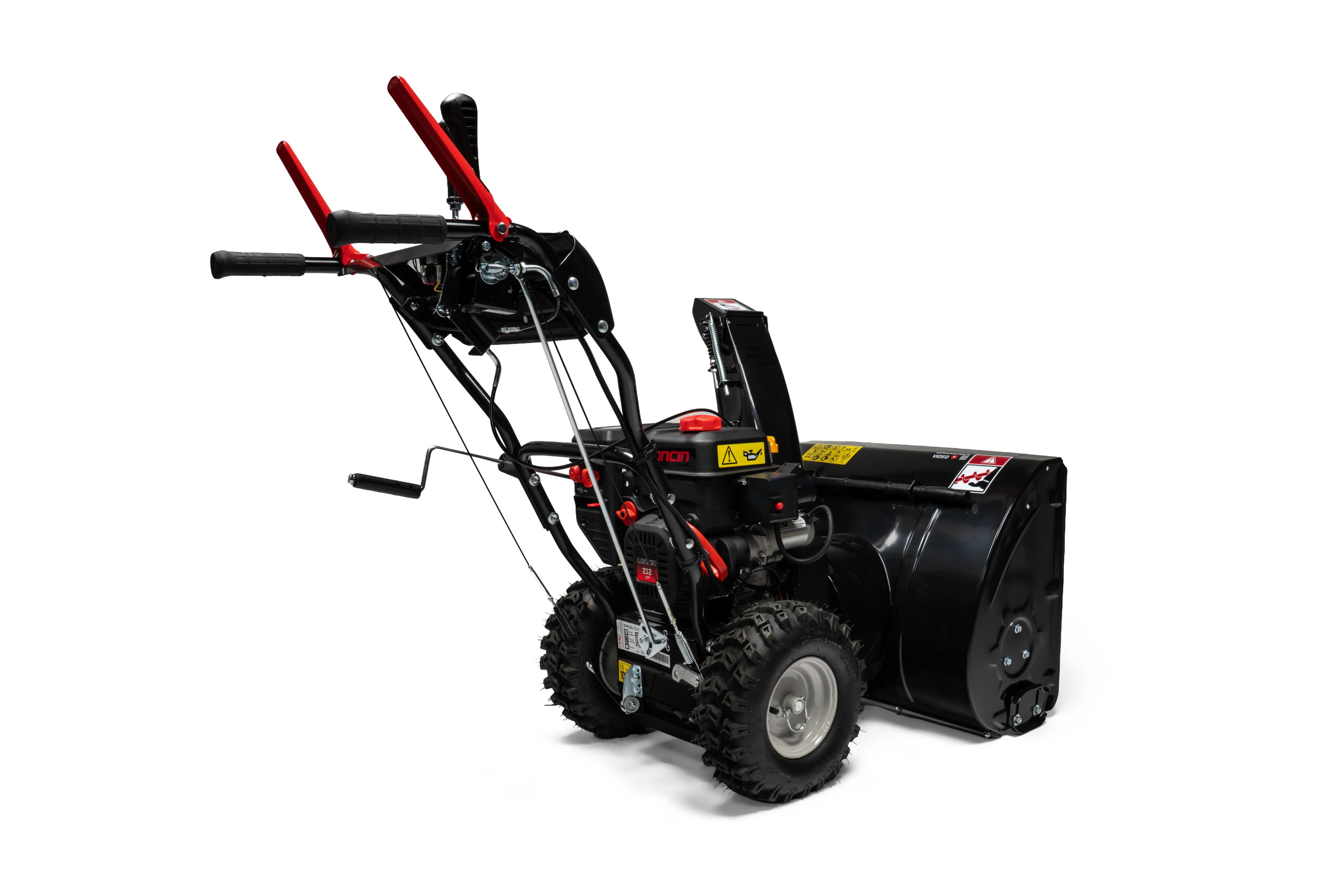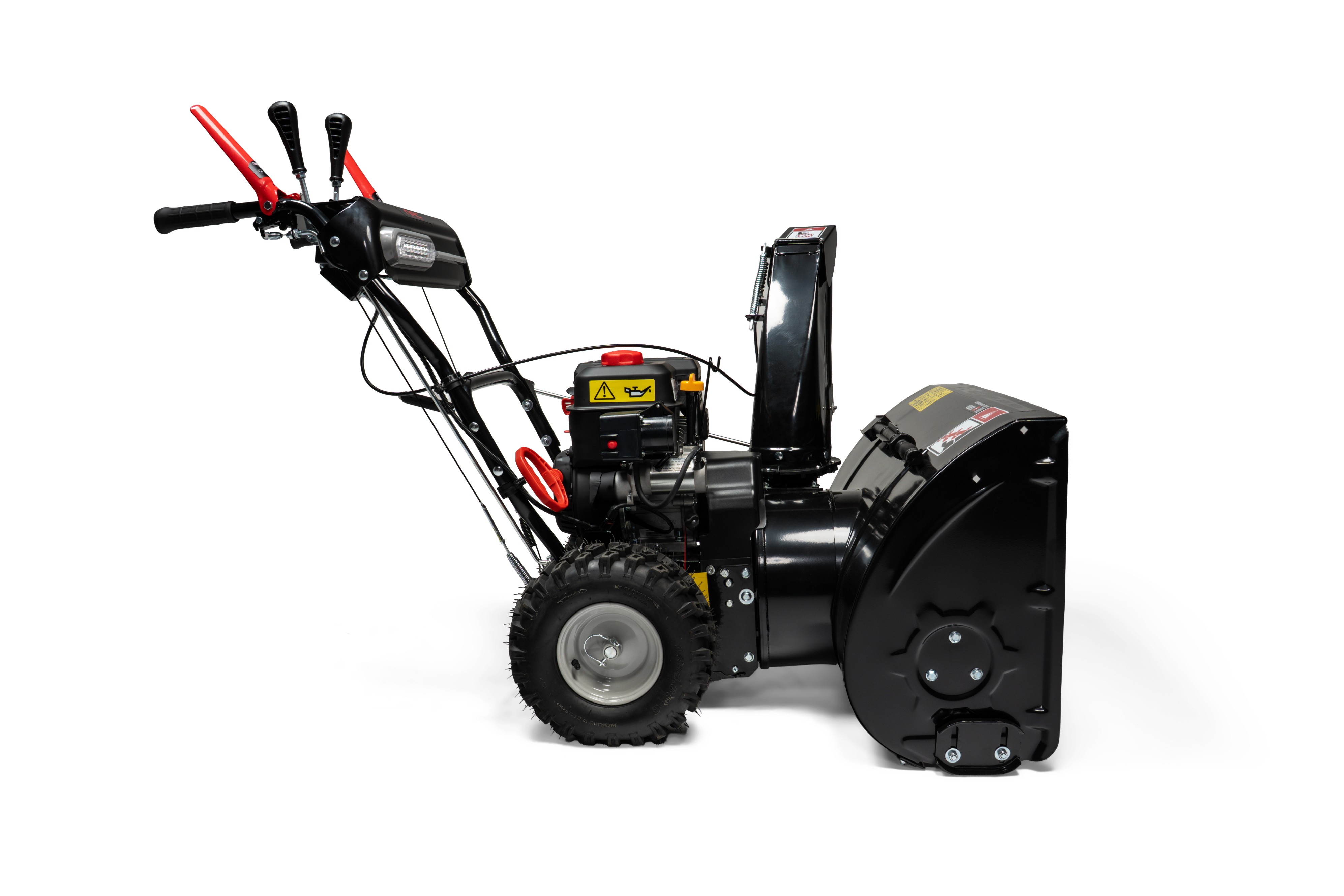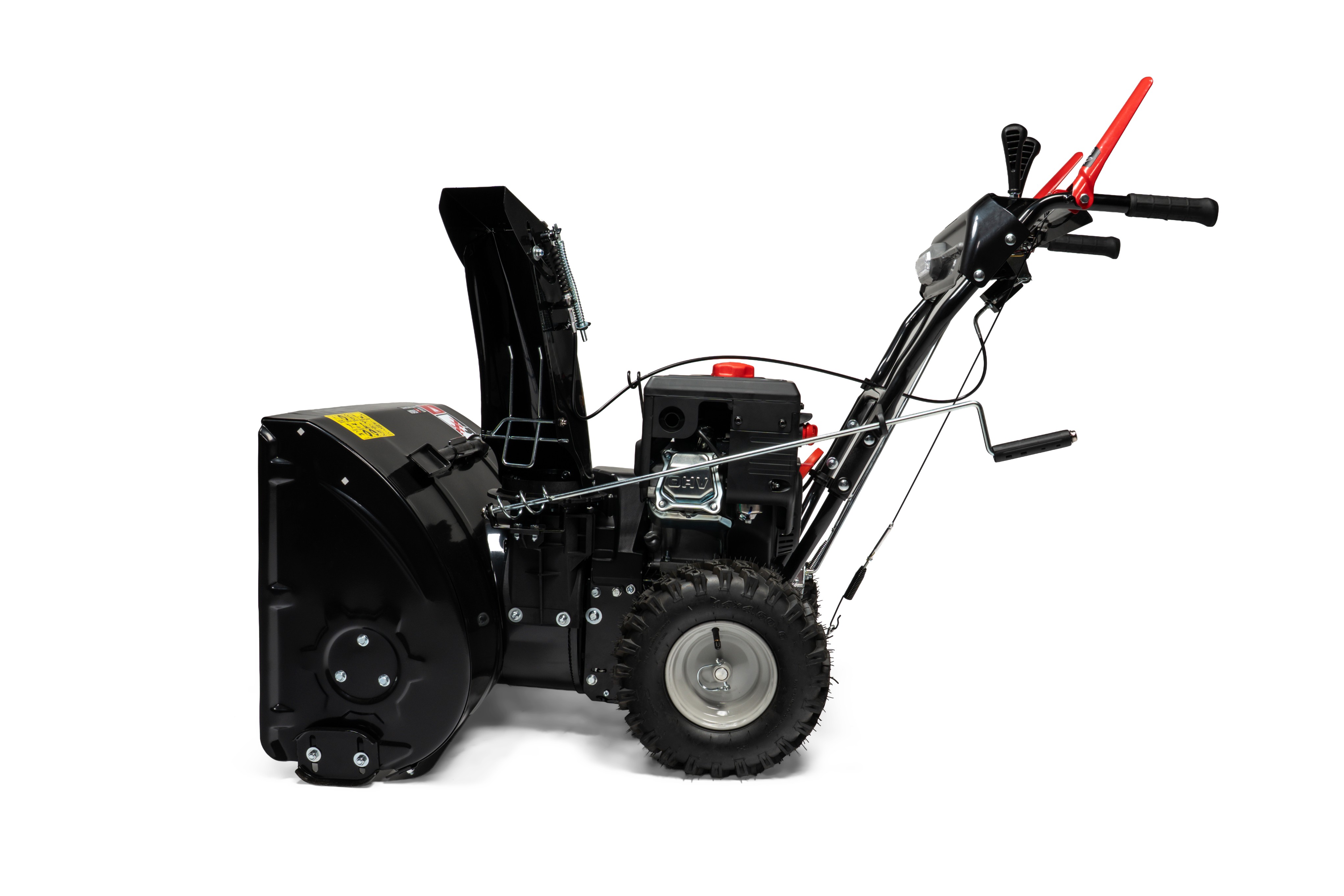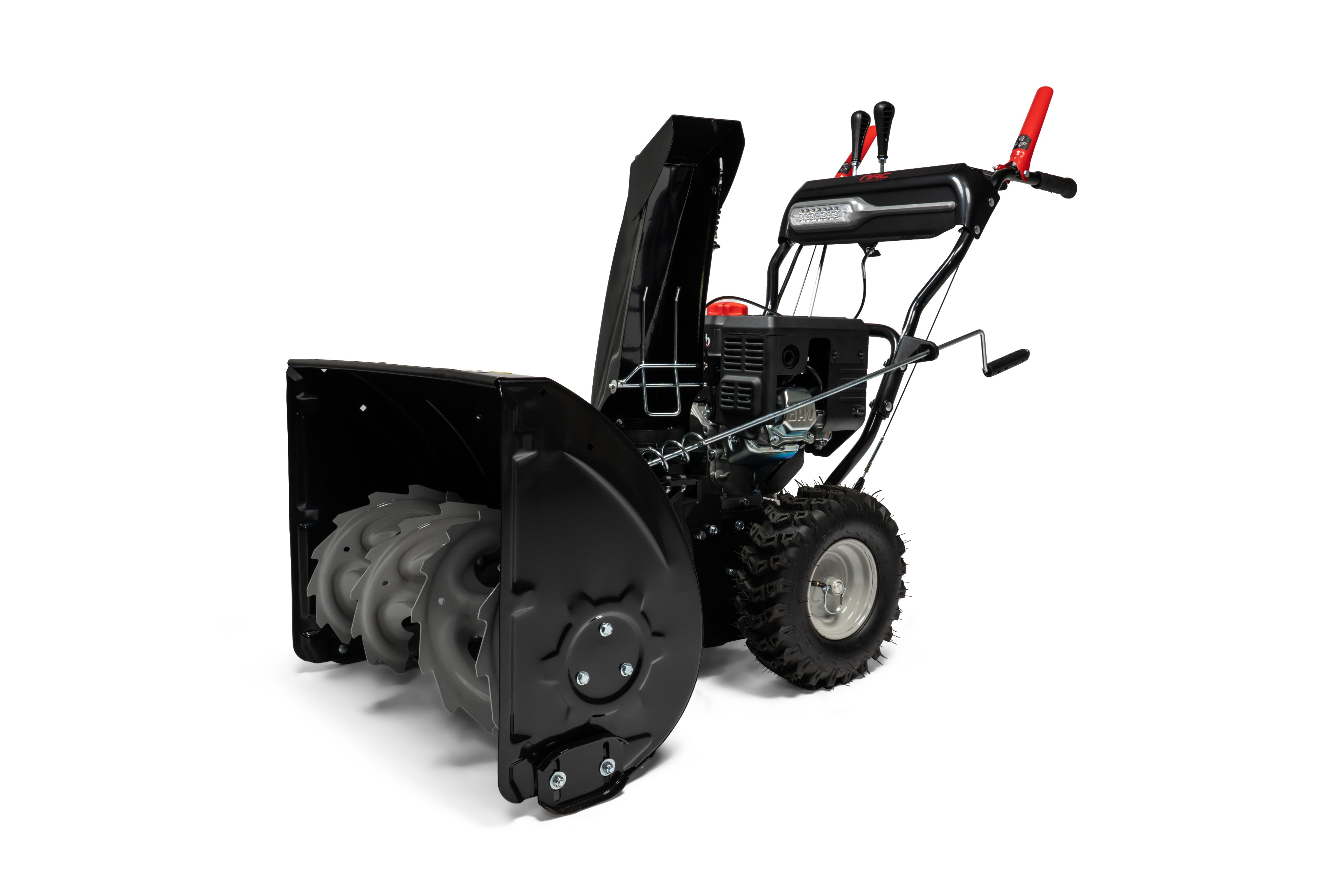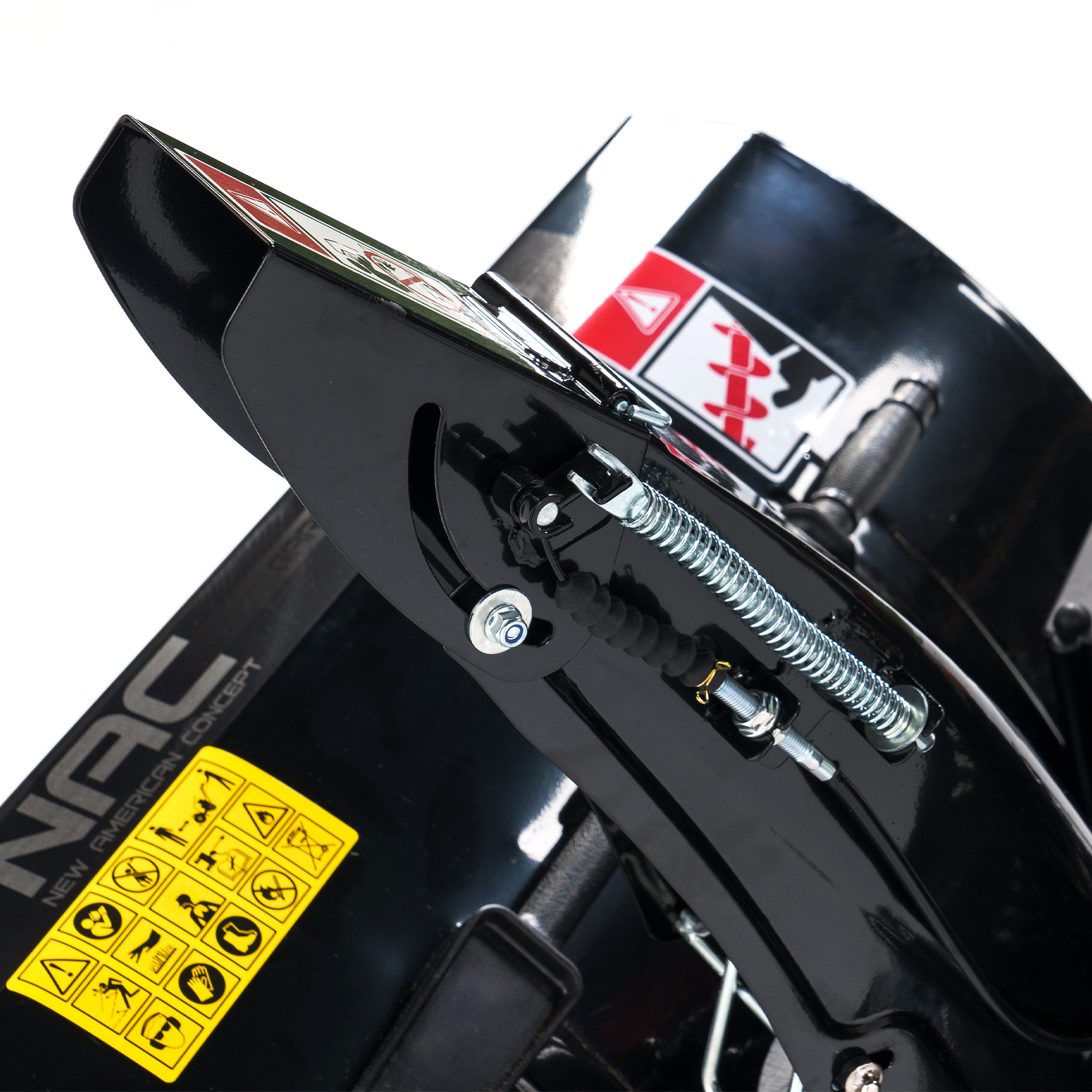 Regulowany komin wyrzutowy obraca się w zakresie 190 stopni (za pomocą uchwytu). Sterowanie odbywa się wygodnie przy panelu. Możesz precyzyjnie skierować strumień śniegu na odległość nawet 11 metrów, dokładnie tam, gdzie chcesz – z dala od chodnika czy zaparkowanych samochodów.