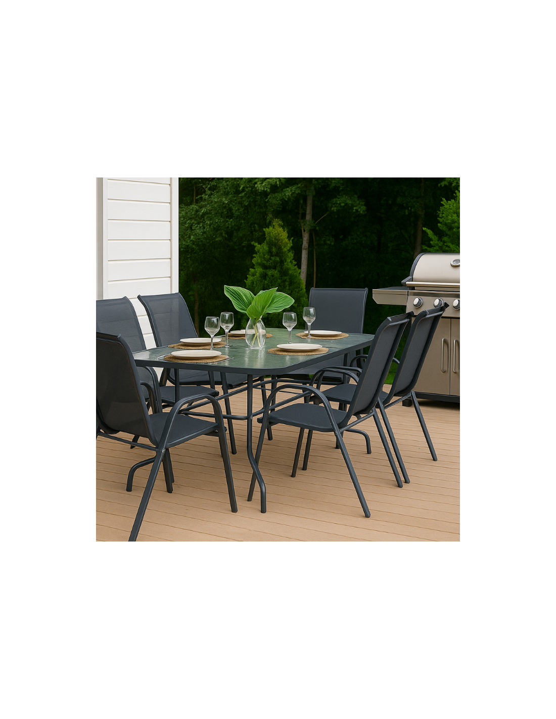 Styl, wygoda i funkcjonalność w jednym – gotowy zestaw ogrodowy MEVEN dla 6 osób to idealne rozwiązanie na letnie spotkania, rodzinne obiady i chwile relaksu na świeżym powietrzu.