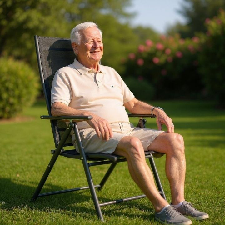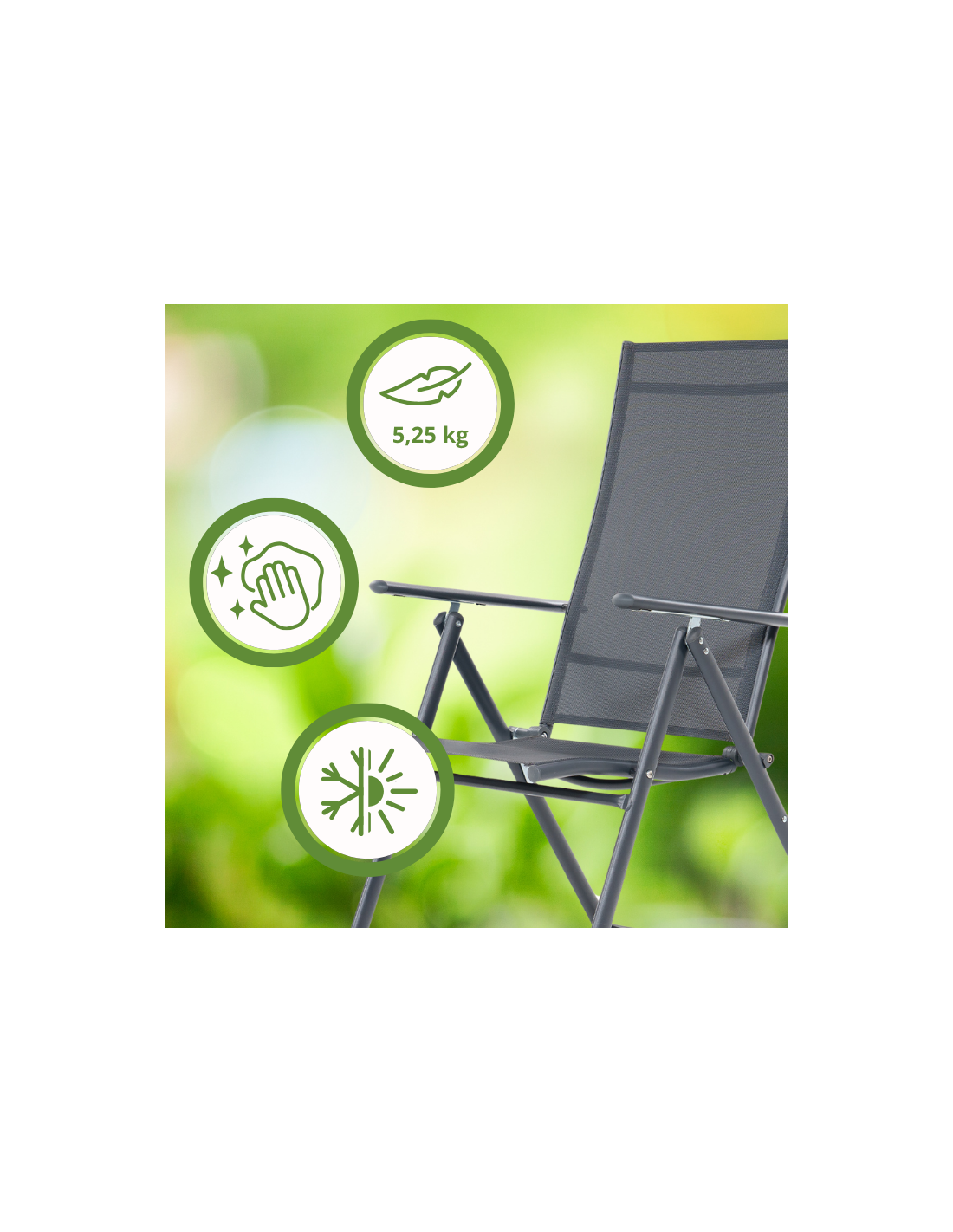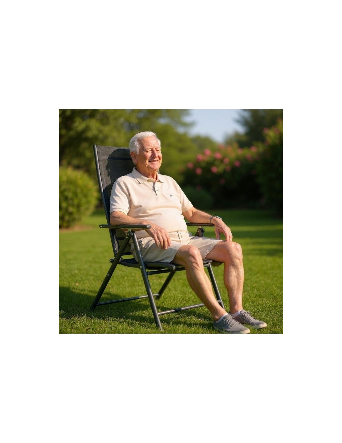 ❇️ Regulowane oparcie razem z wygodnymi podłokietnikami sprawiają, że nawet wielogodzinny wypoczynek na zewnątrz staje się czystą przyjemnością.