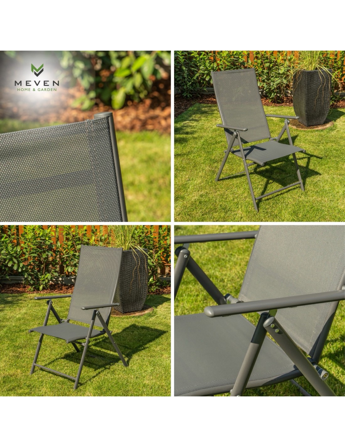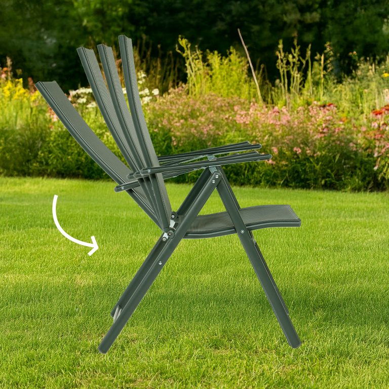 Zestaw wielopozycyjnych foteli Daytona MEVEN w eleganckiej szarości to Twoja przepustka do beztroskiego relaksu na świeżym powietrzu.