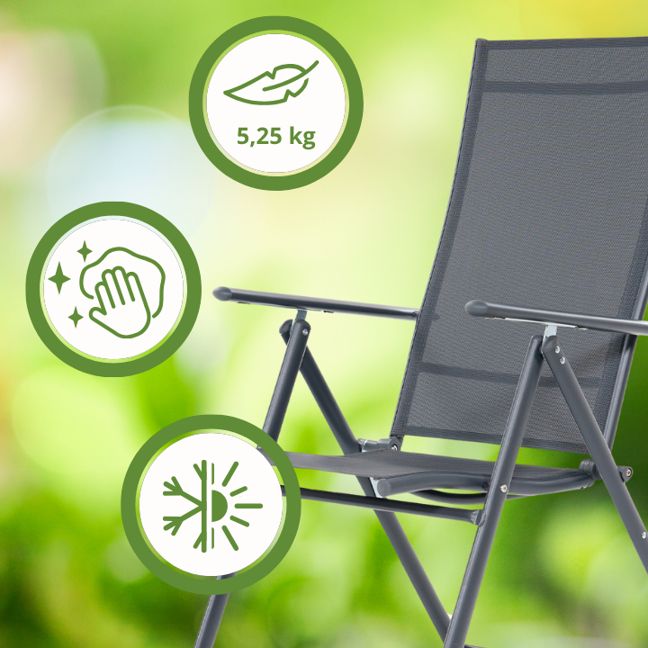 ❇️ Siedzisko wykonane z oddychającej tkaniny Textilene doskonale dopasowuje się do sylwetki, zapewniając uczucie chłodu i komfortu.