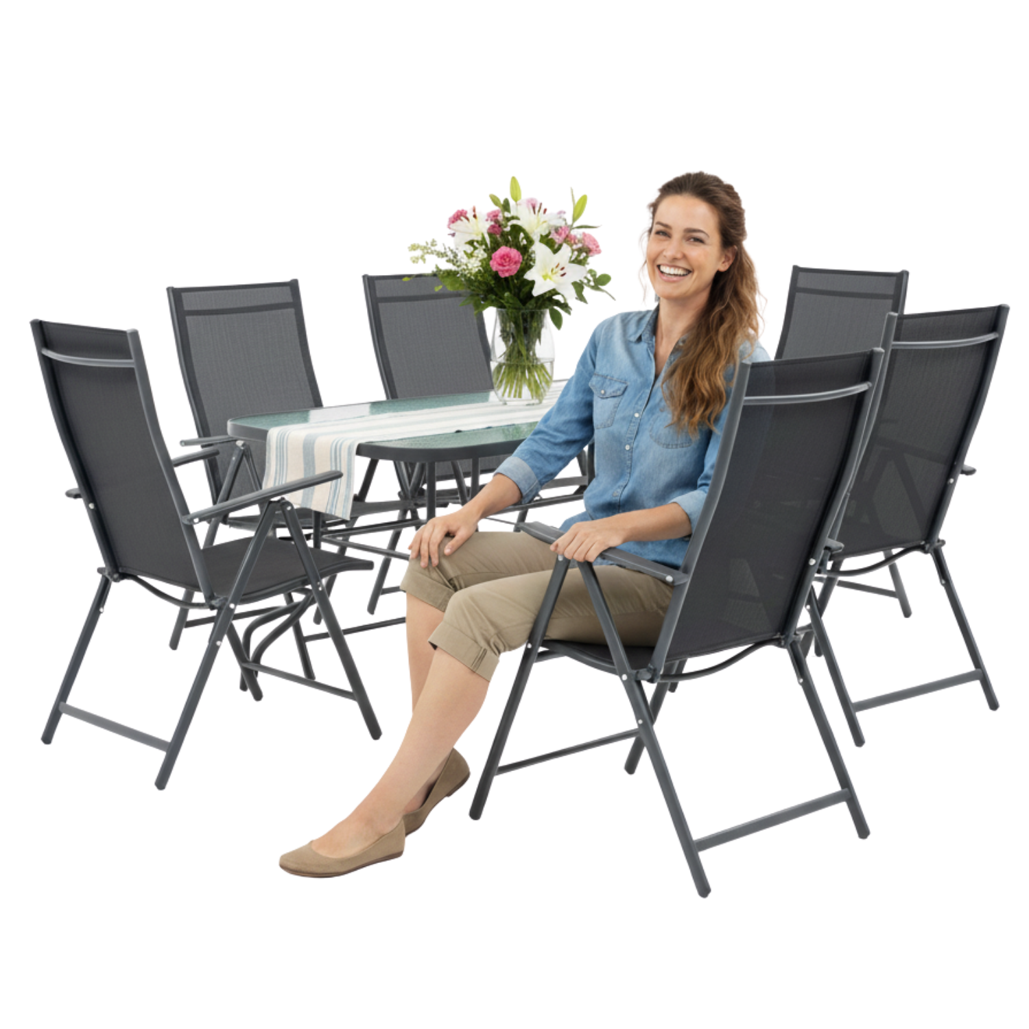 Komplet mebli ogrodowych dla 6 osób - stół obiadowy Tampa + 6 foteli wielopozycyjne Daytona Meven