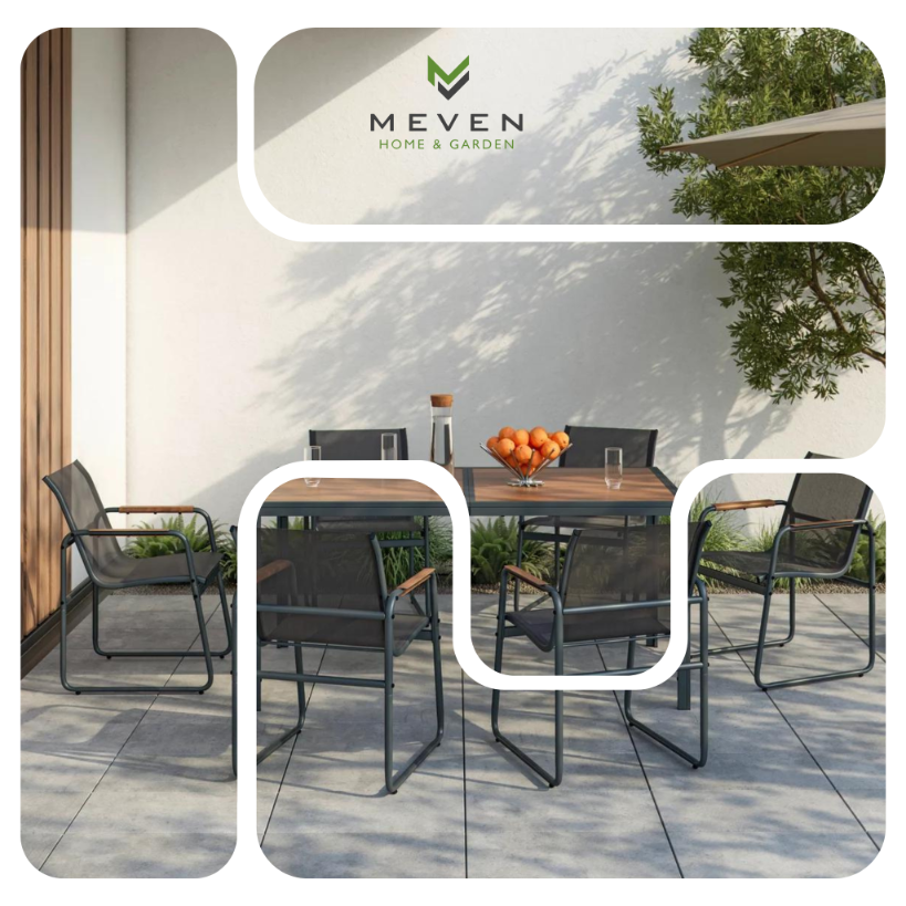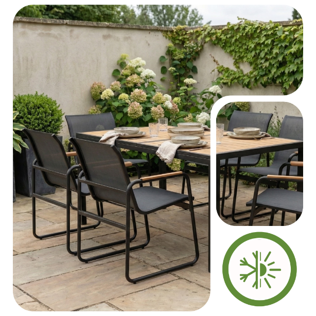 Grafit i drewno to ponadczasowy duet, który pasuje wszędzie. Murcja świetnie wygląda zarówno na tle nowoczesnego betonu, jak i w przytulnym, pełnym kwiatów ogrodzie. To meble, które nie narzucają stylu, lecz go podkreślają – wystarczy zmiana poduszek, by nadać tarasowi zupełnie nowy charakter, mając pewność, że baza zawsze wygląda dobrze.