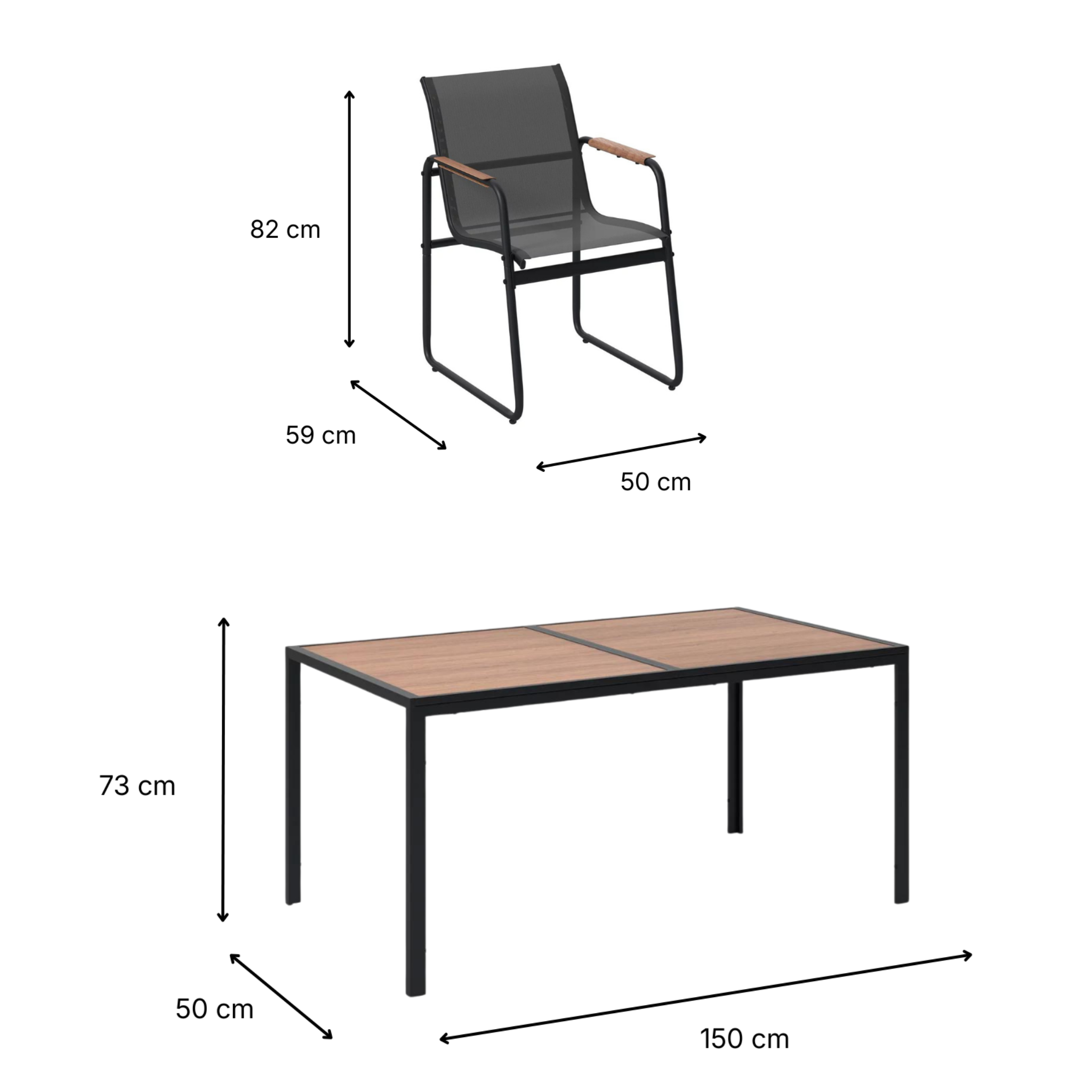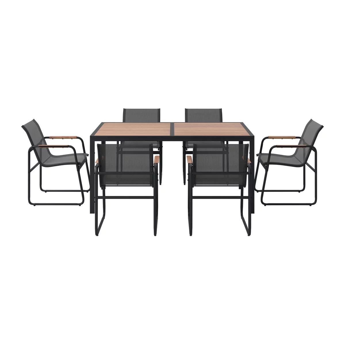 Blat z kompozytu WPC i podłokietniki heat transfer do złudzenia przypominają naturalne deski, a konstrukcja ze stali malowanej proszkowo zapewnia im pancerną odporność na rdzę.