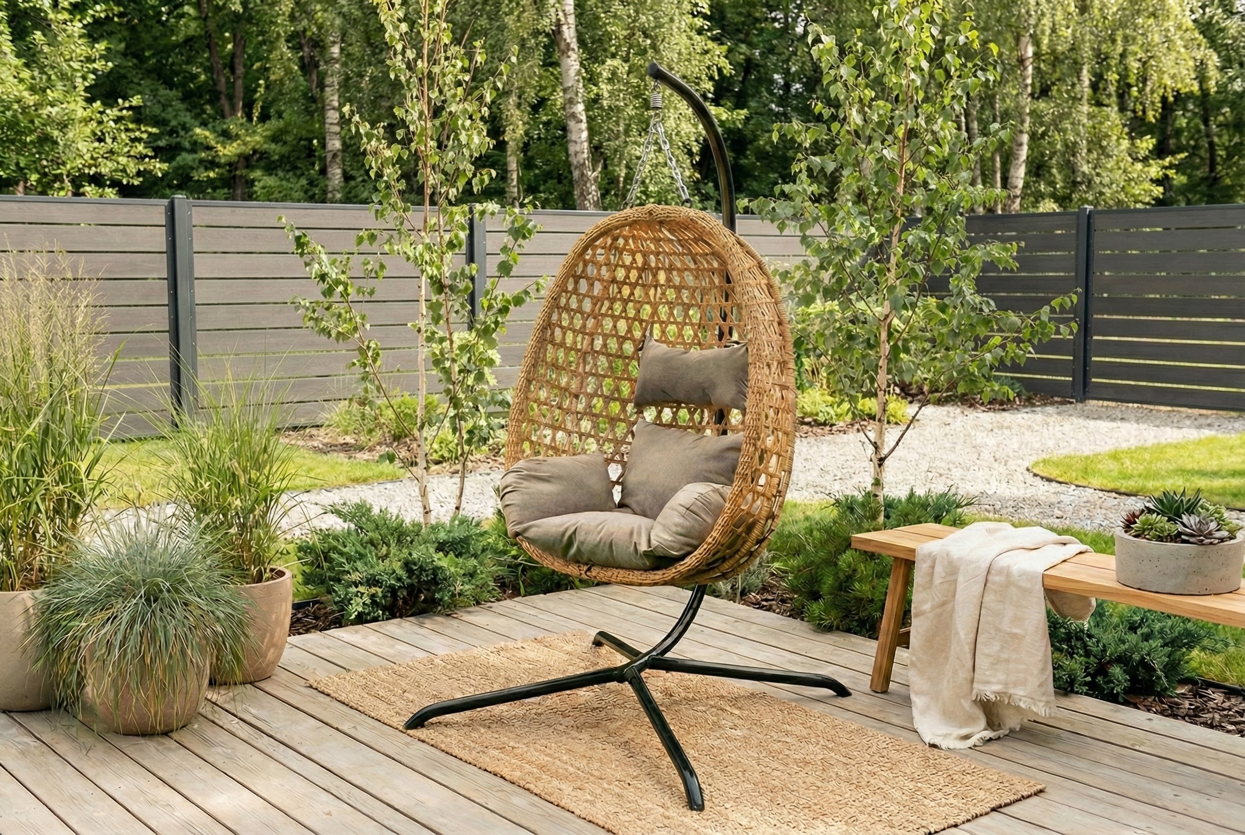 Przemyślany kształt kosza naturalnie odciąża Twoje plecy i dba o prawidłową postawę podczas każdej minuty relaksu. Dzięki gęstemu wypełnieniu poduszek unikasz kłopotliwego efektu zapadania się, co gwarantuje stabilne wsparcie kręgosłupa i natychmiastowe rozluźnienie spiętych mięśni. Delikatne kołysanie dopełnia całości, zmieniając zwykłą chwilę na tarasie w regenerujący rytuał dla Twojego zdrowia i doskonałego samopoczucia po całym dniu pracy.