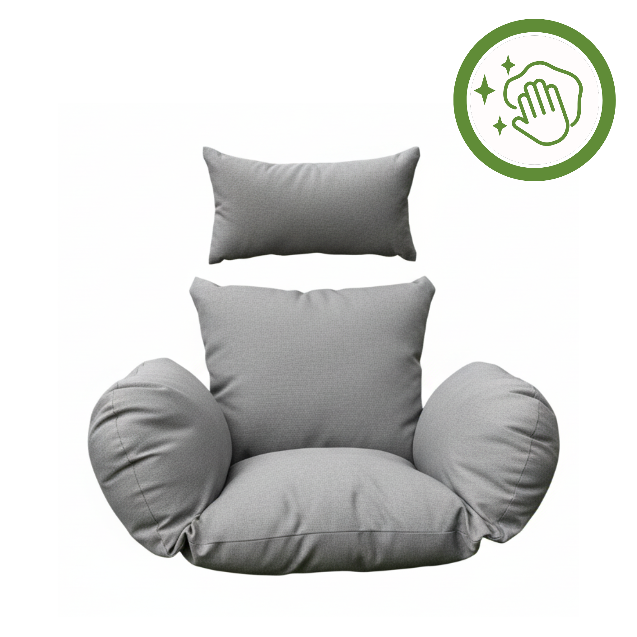 Zatop się w grubych poduszkach z zaawansowanej tkaniny Olefin 180g/m², która zapewnia luksusowy odpoczynek i całkowitą odporność na blaknięcie. Dzięki hydrofobowej strukturze materiału wszelkie zabrudzenia oraz płyny zatrzymują się na powierzchni, co pozwala Ci usunąć je w kilka sekund za pomocą wilgotnej ściereczki lub zwykłej wody.