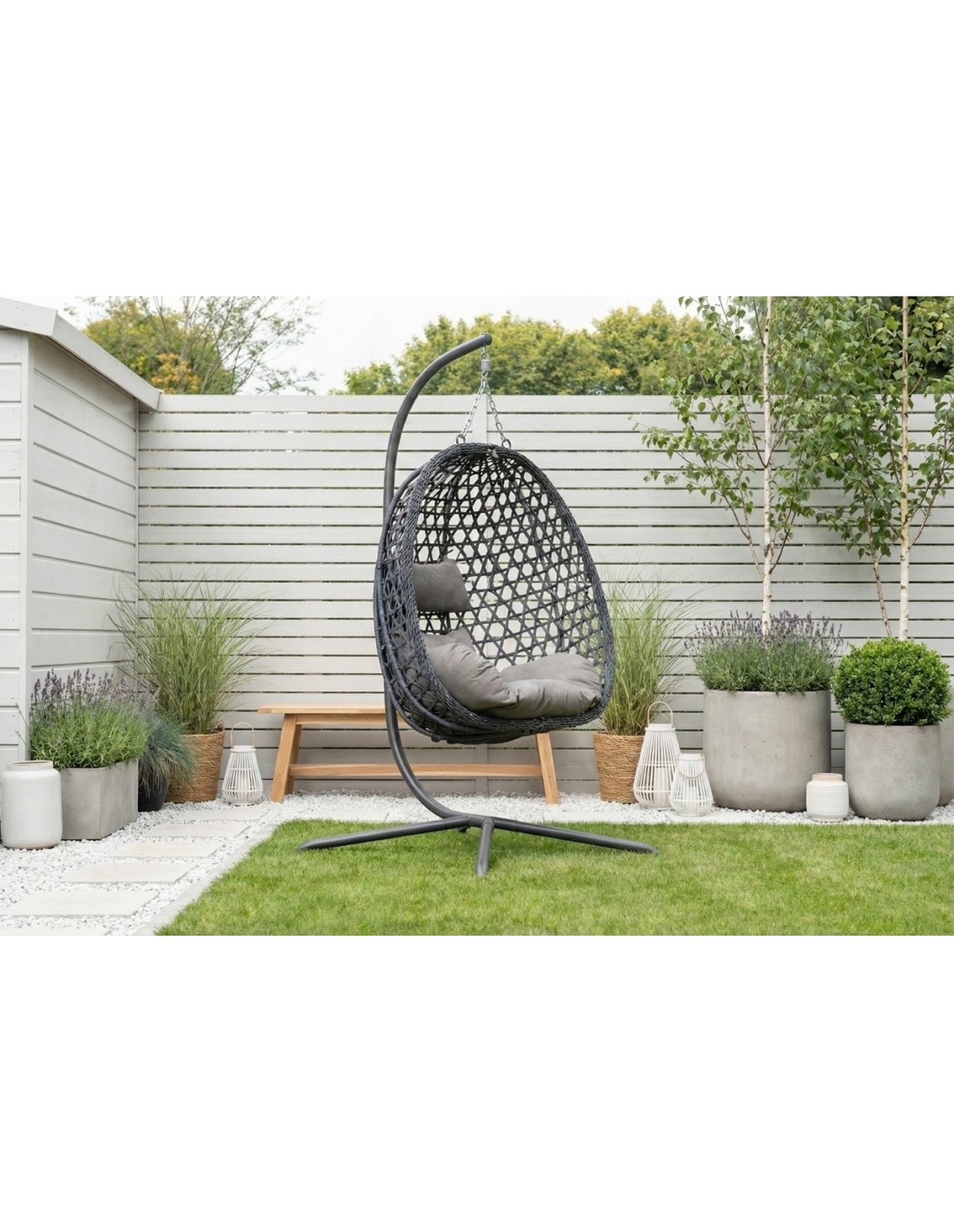 Stabilny i wolnostojący stelaż pozwala Ci na pełną swobodę bez kłopotliwego montażu na stałe. Z łatwością przeniesiesz swój ulubiony kokon z tarasu do salonu lub sypialni, dzięki czemu luksusowy komfort towarzyszy Ci przez okrągły rok, niezależnie od pogody. Zyskujesz uniwersalny mebel, który zawsze znajduje się dokładnie tam, gdzie aktualnie masz ochotę na chwilę błogiego wytchnienia.