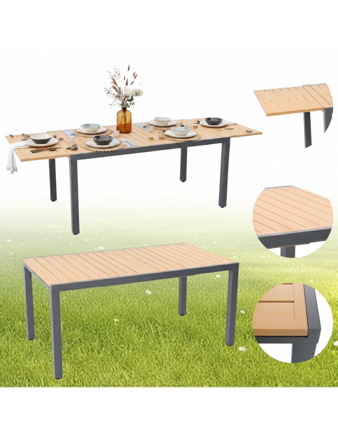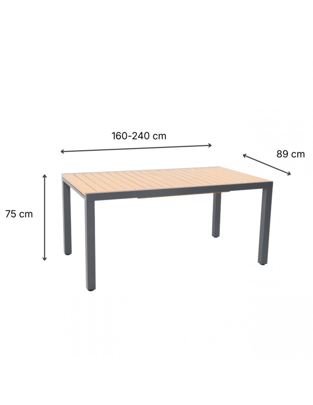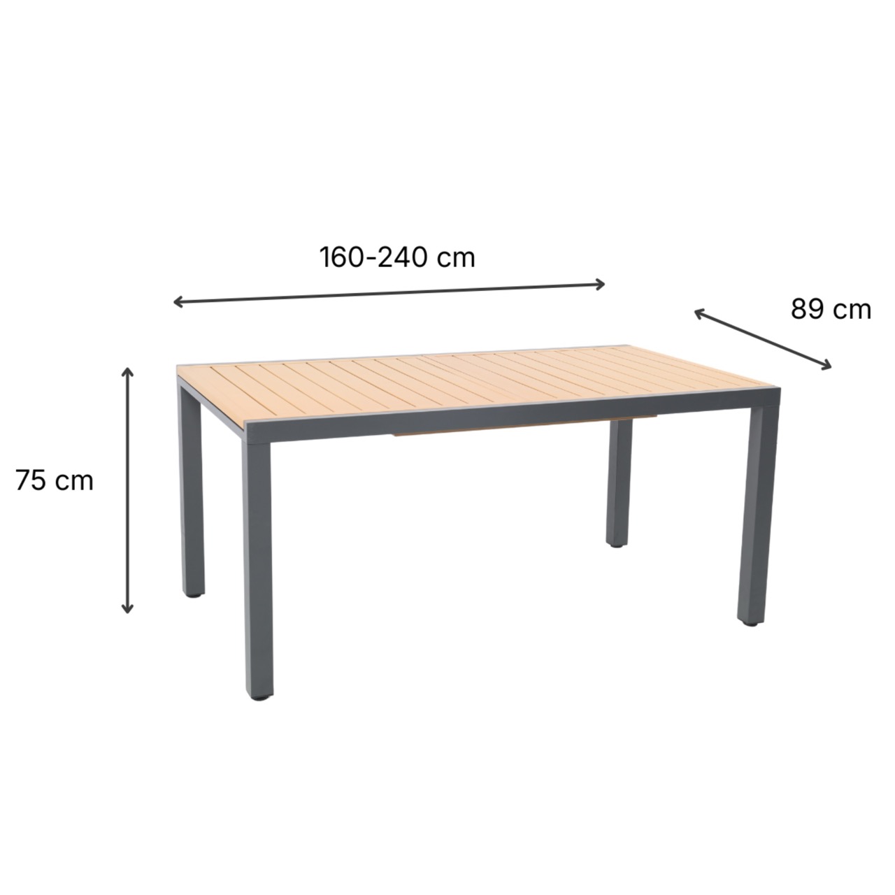 Grafitowy stół ogrodowy rozkładany z aluminium Meven Valencia 160/240 cm