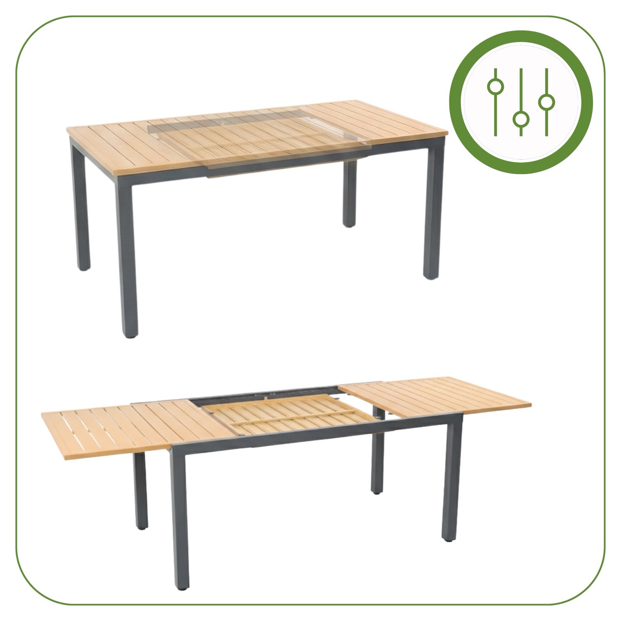 Dzięki regulacji długości w zakresie 160–240 cm, możesz swobodnie ugościć od 4 do nawet 8 osób bez konieczności dostawiania dodatkowych stolików czy reorganizacji całego tarasu.