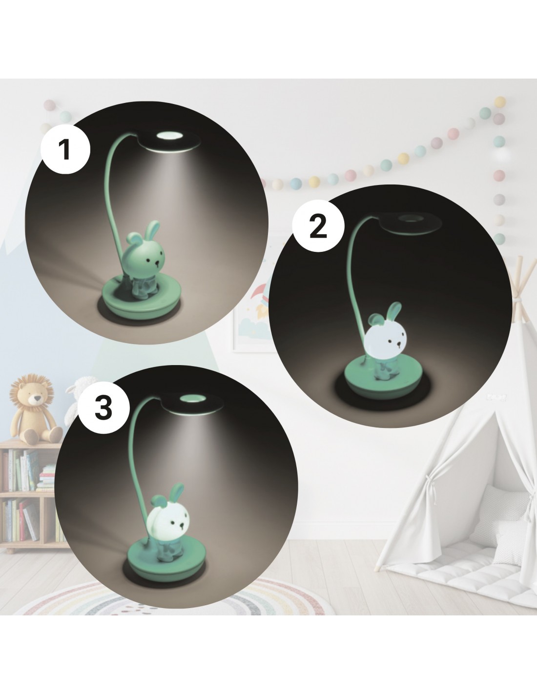 ❣️ Praktyczna funkcja 3w1 - Ty decydujesz, co świeci: tylko górny pierścień do czytania, tylko uroczy Króliczek jako lampka nocna, lub obie lampki naraz, gdy potrzebujecie więcej światła w pokoju.