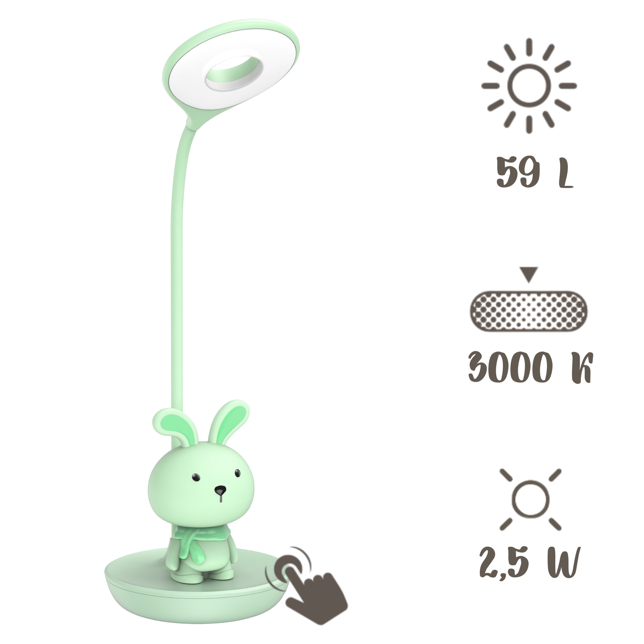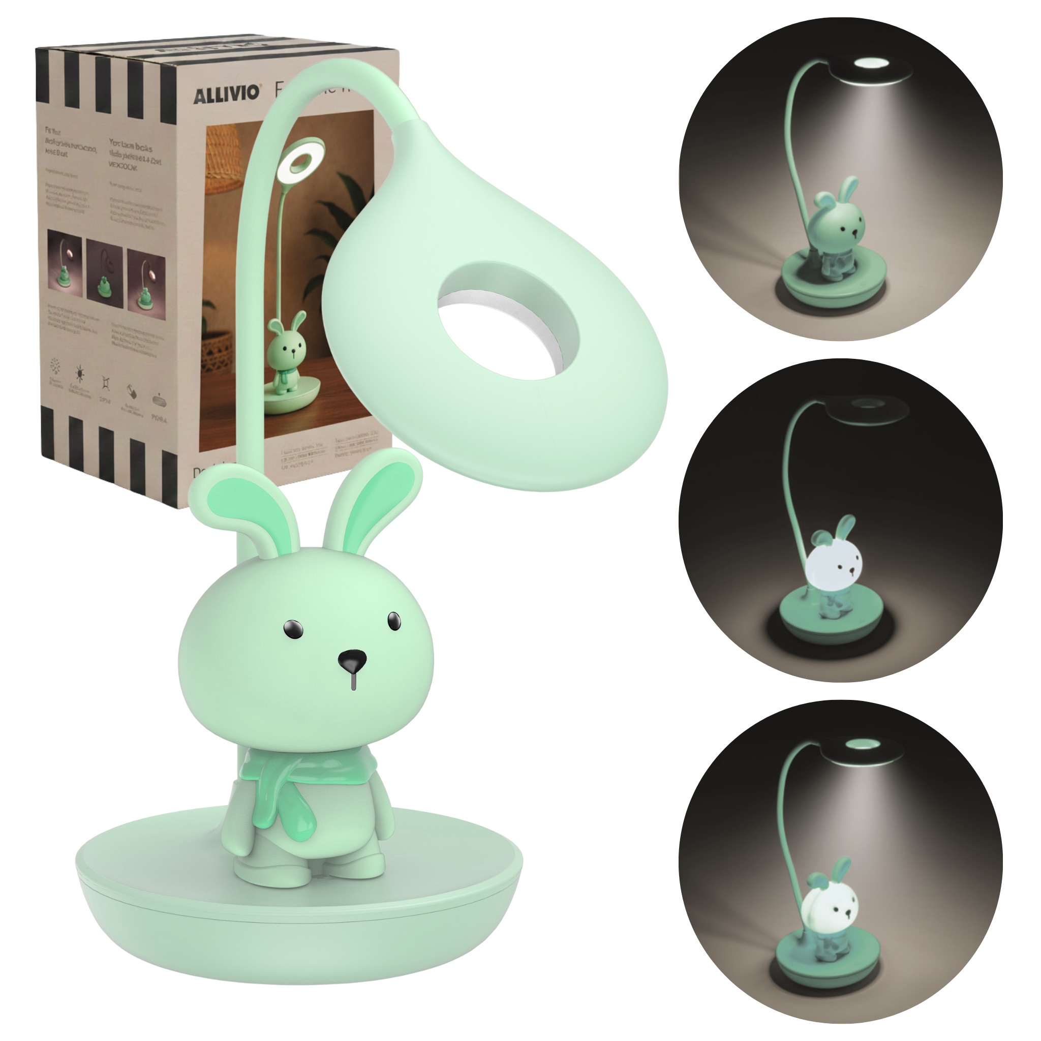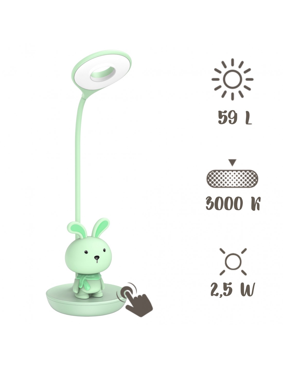 Elastyczna lampka biurkowa / nocna Zielony króliczek + USB