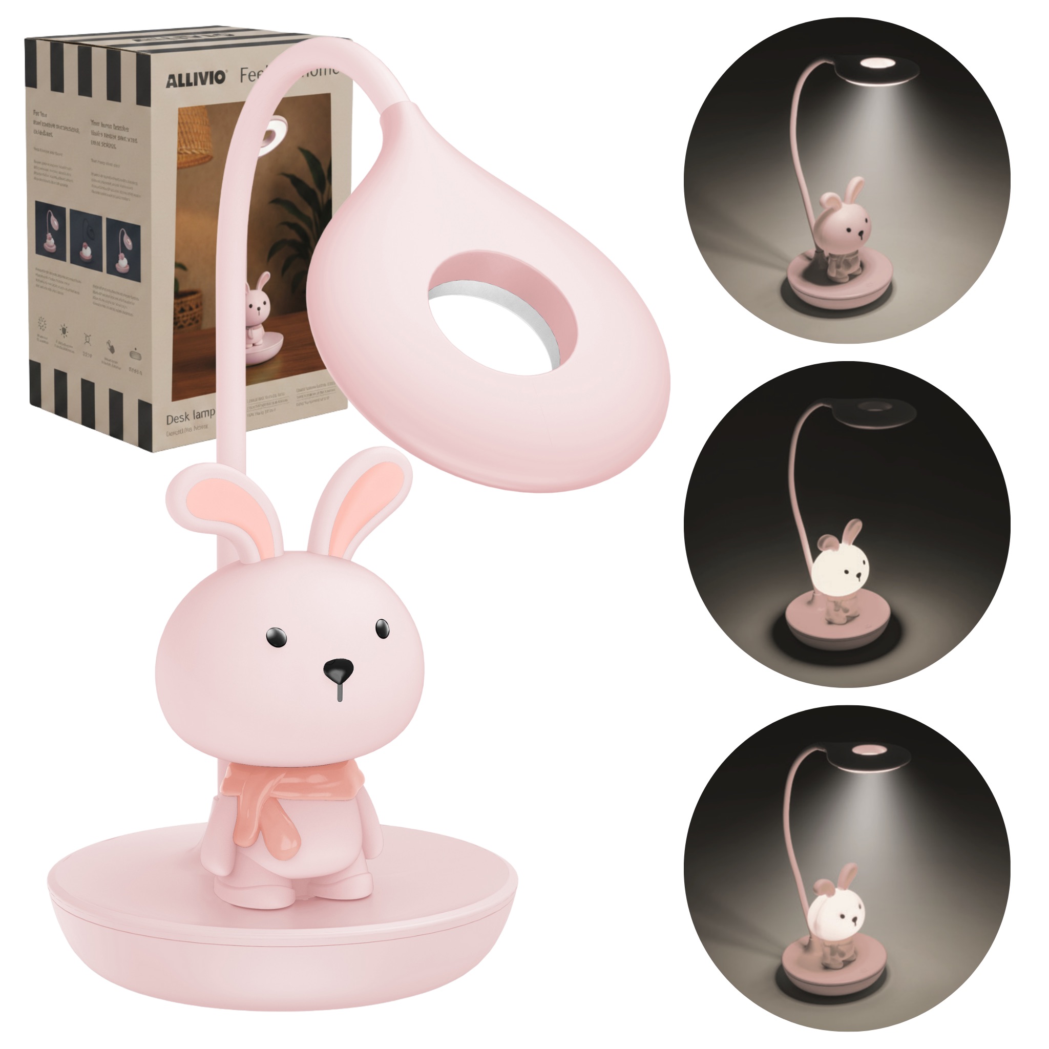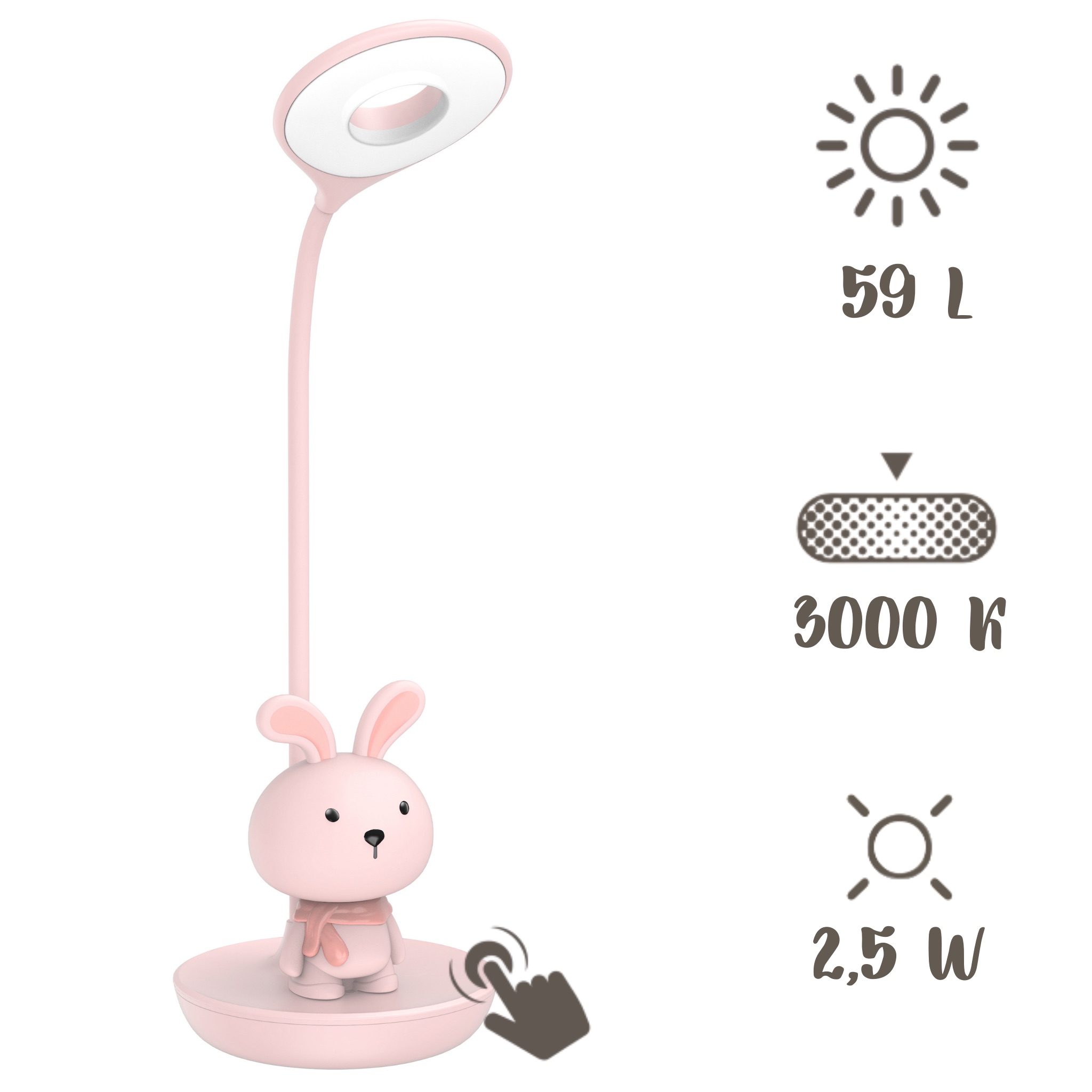 Elastyczna lampka biurkowa / nocna Różowy króliczek + USB