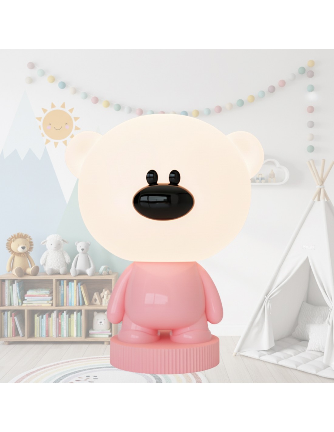 Lampka nocna dla dzieci Różowy Miś LED RGB + USB