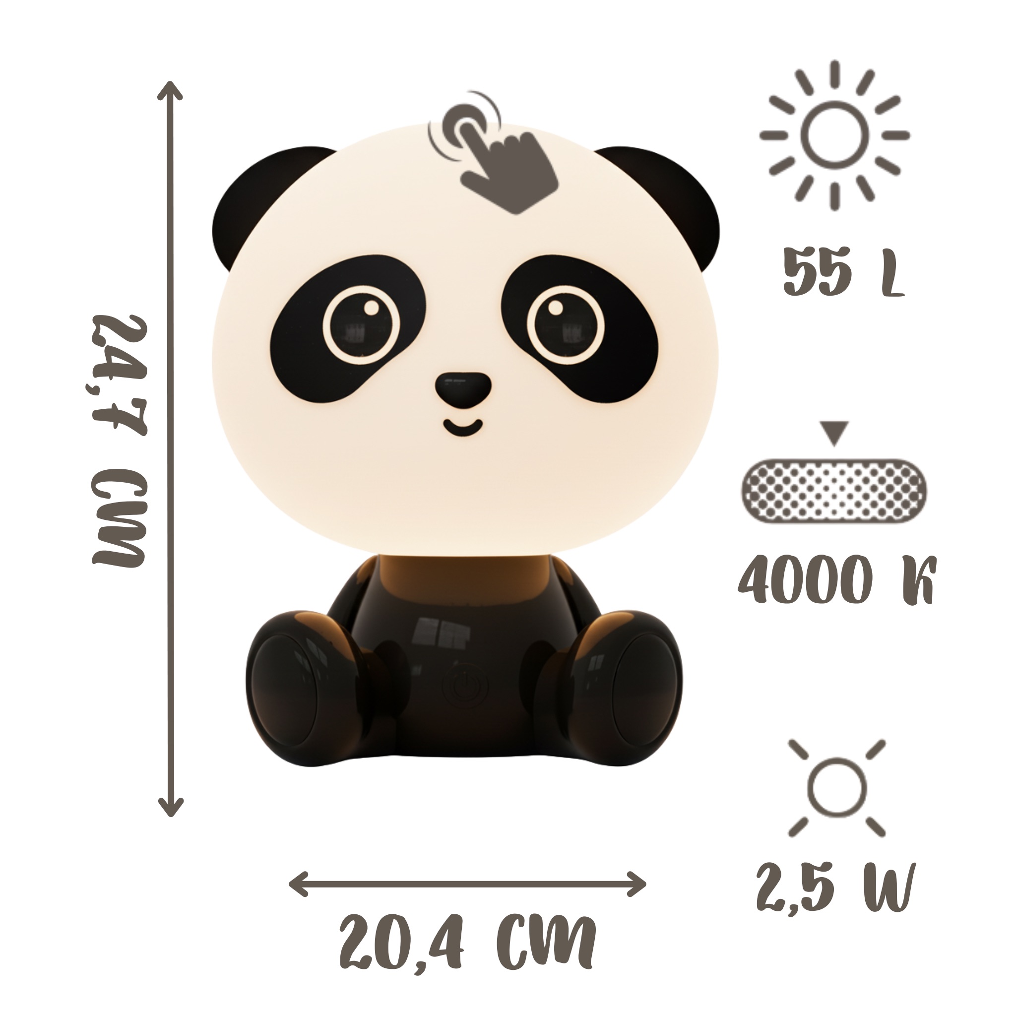 Ta urocza panda to sposób na szybkie wyciszenie malucha po dniu pełnym wrażeń. Dzięki wytrzymałej obudowie lampka przetrwa każdą zabawę, a prosta obsługa dotykiem sprawi dziecku mnóstwo frajdy przy zmianie kolorów.