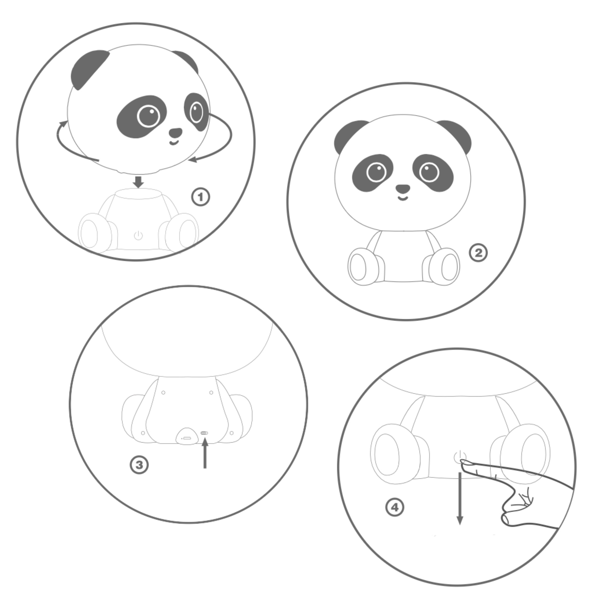 Gdy energia się skończy, po prostu podłącz ją na chwilę do ładowarki lub komputera – 3,5 godziny i panda znów jest gotowa do działania.
