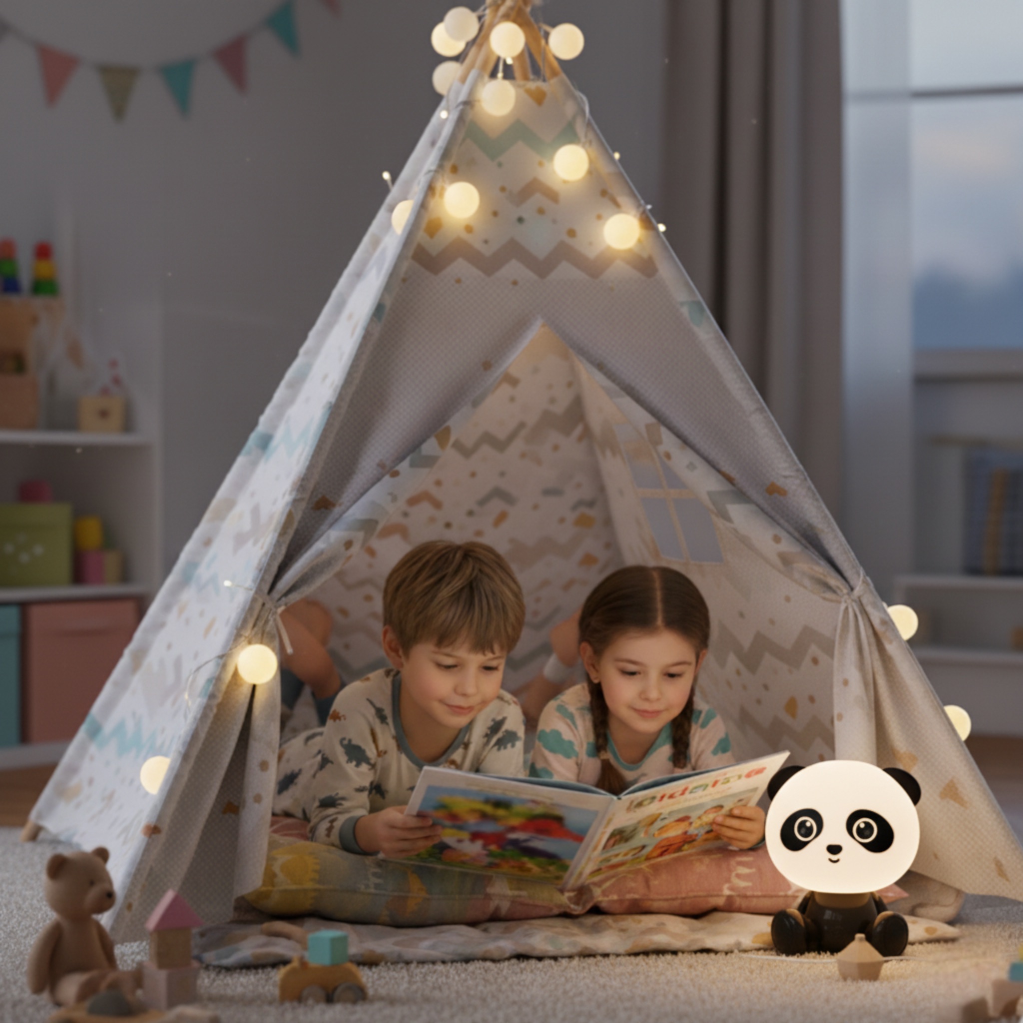 - Jasne białe światło (100% mocy) - świetne do wspólnego czytania bajek przed snem.