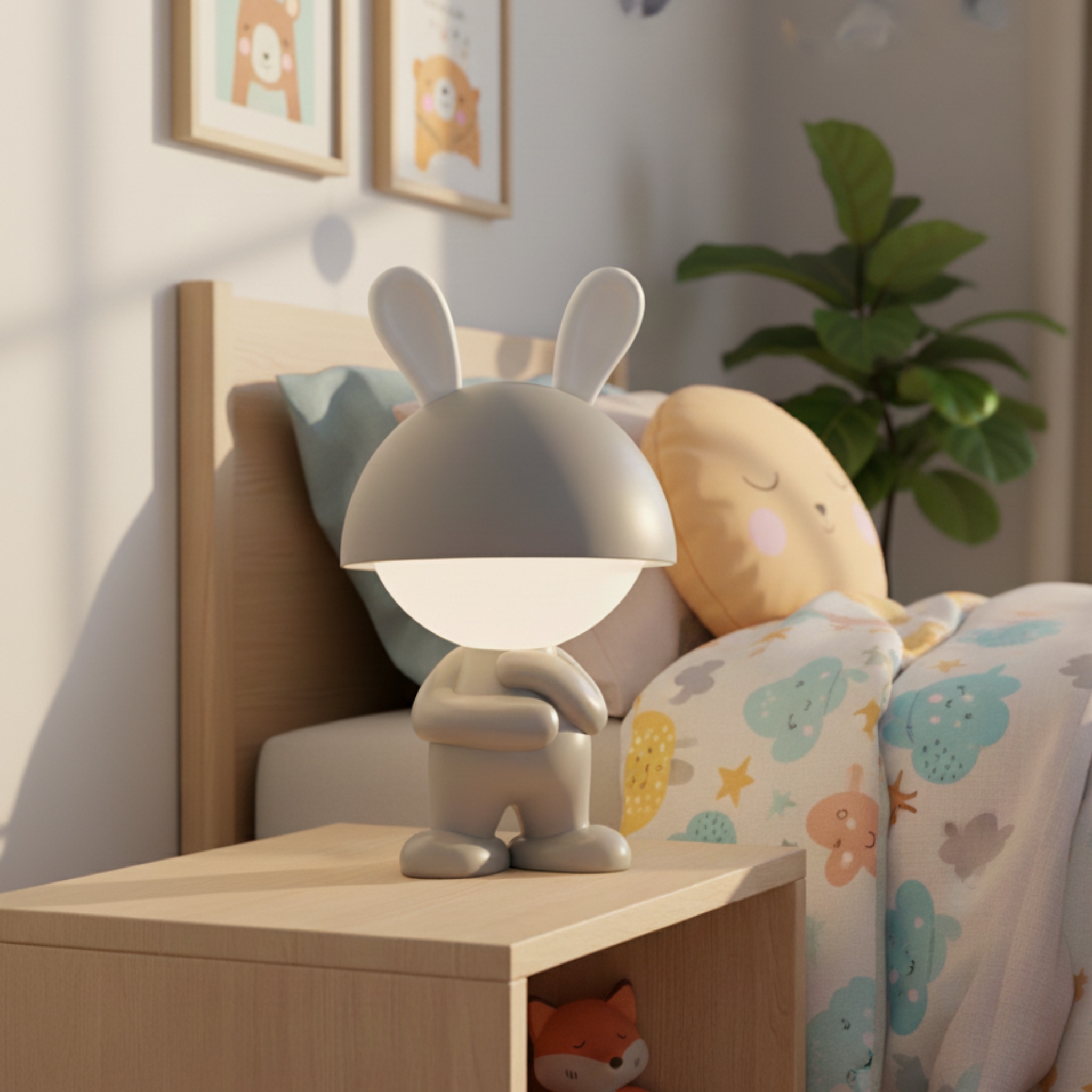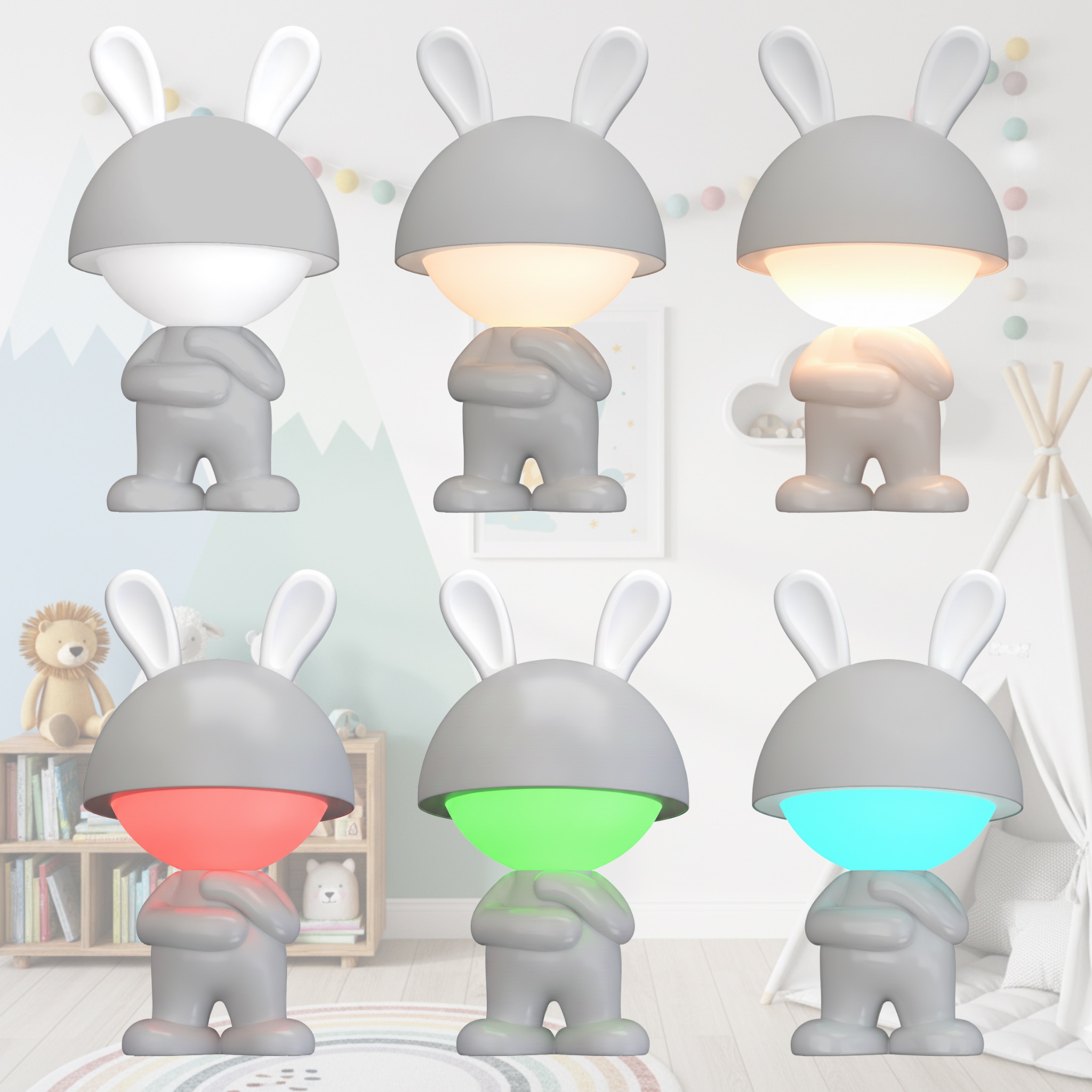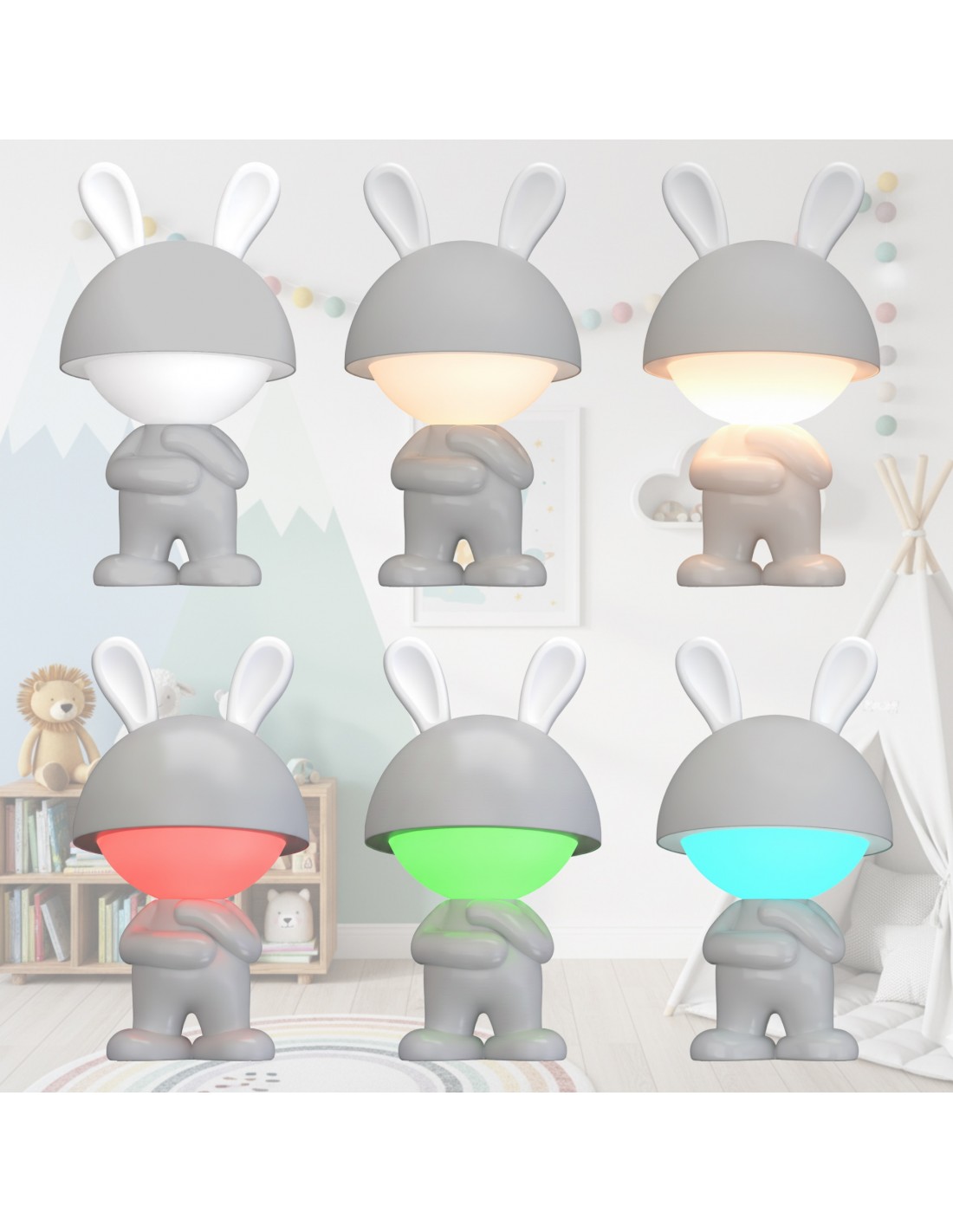 Bezprzewodowa lampka nocna RGB dla dzieci Stojący Króliczek