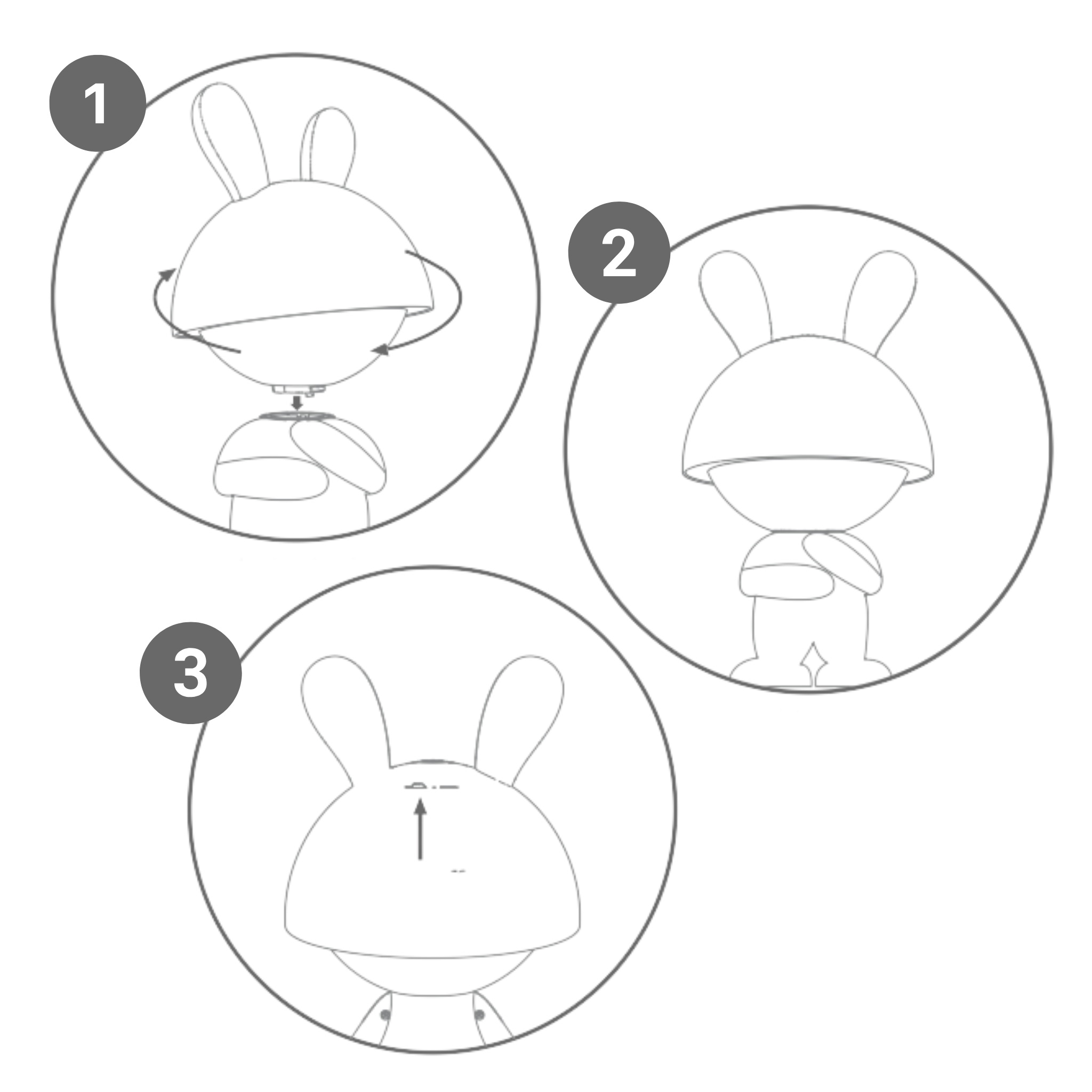 1. Nałóż głowę króliczka na korpus: dopasuj górną część do podstawy.