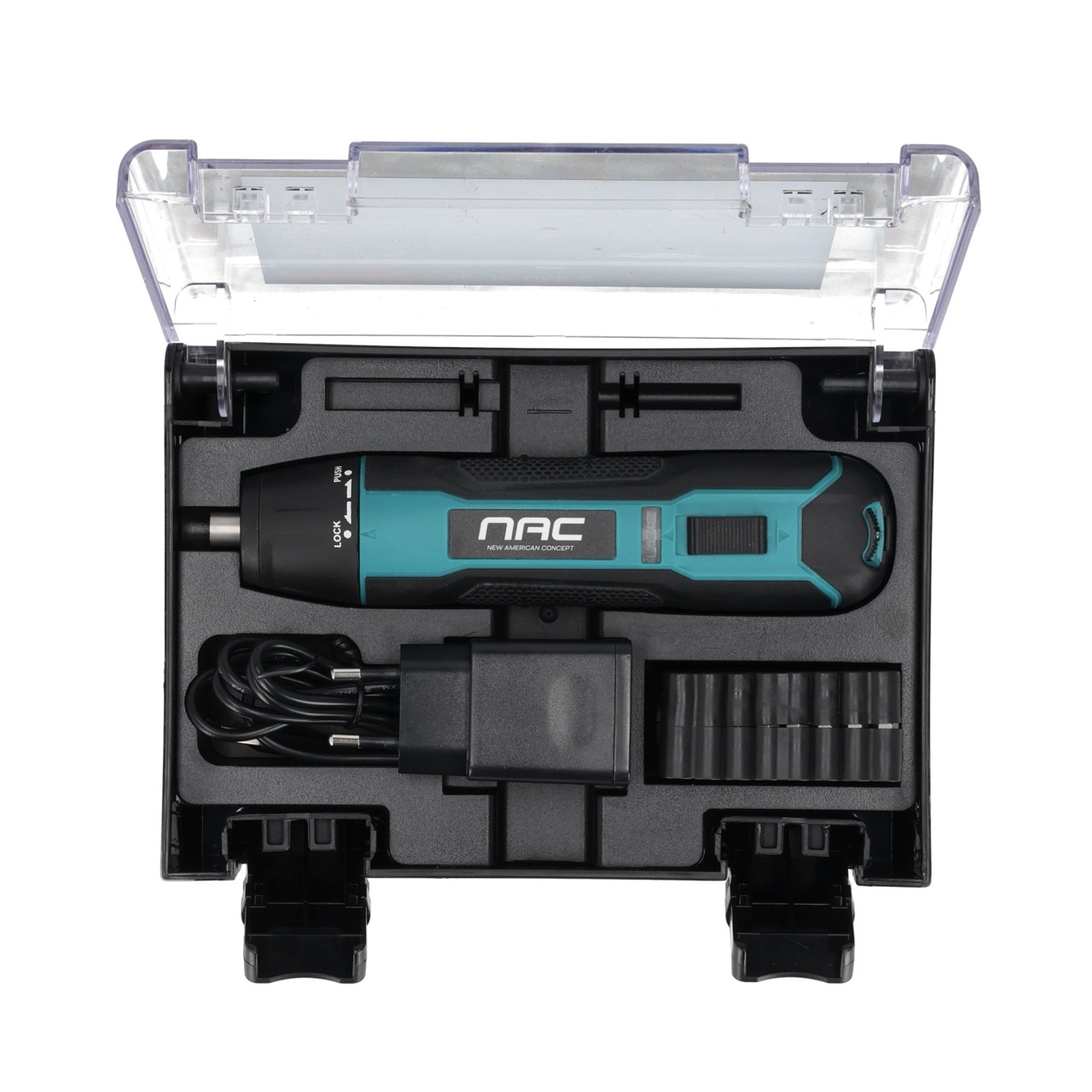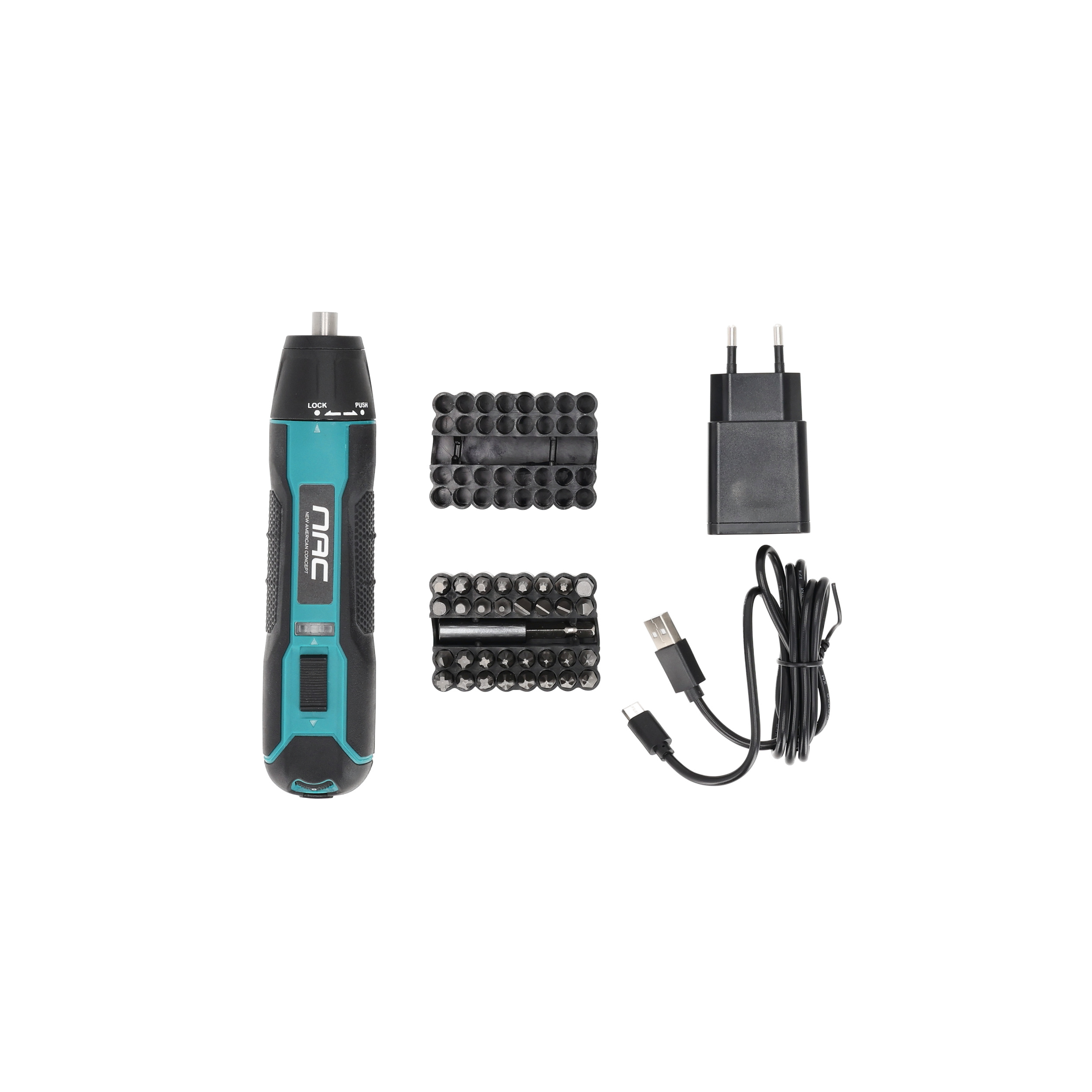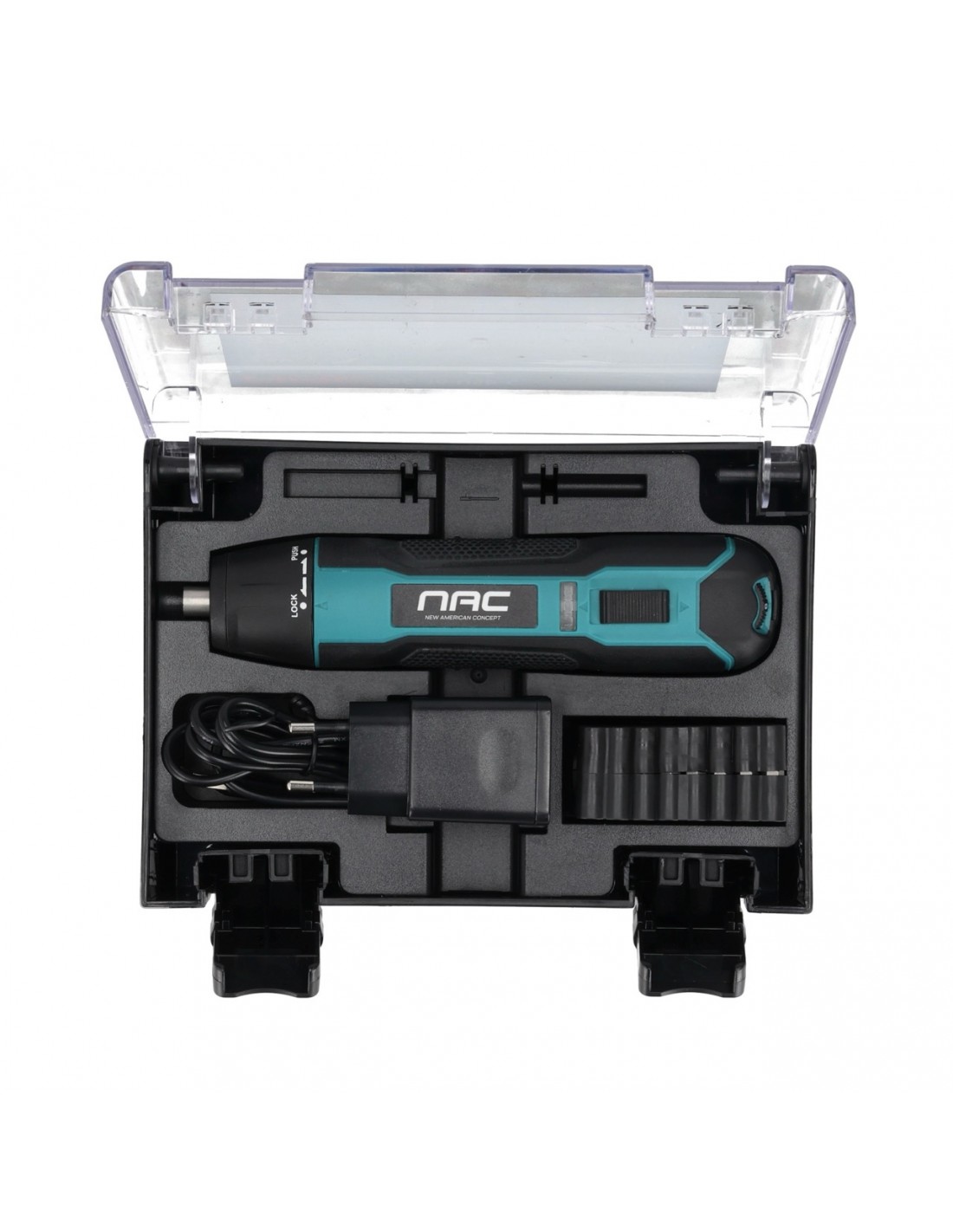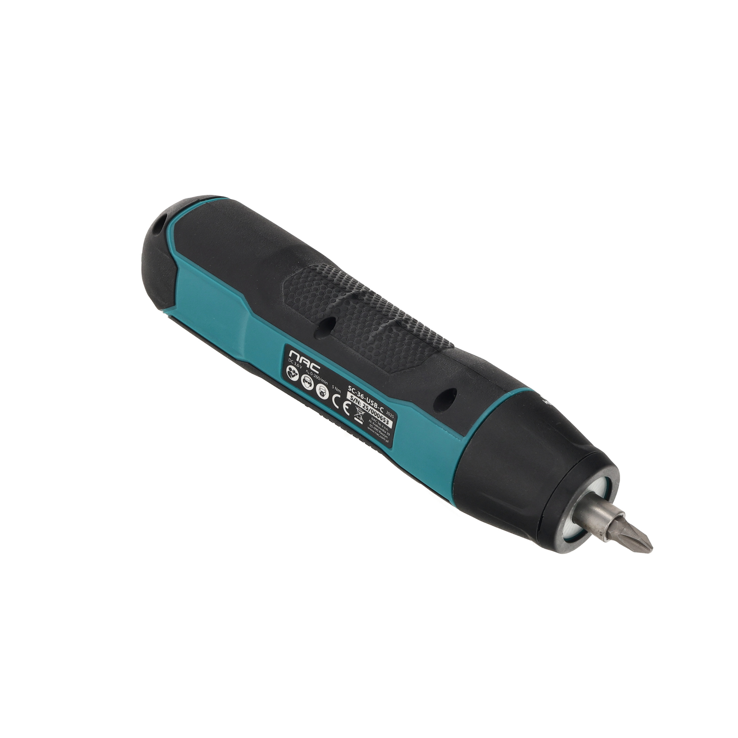 Akumulatorowy wkrętak 3,6 V z zestawem bitów i ładowaniem przez USB-C NAC SC-36-USB-C