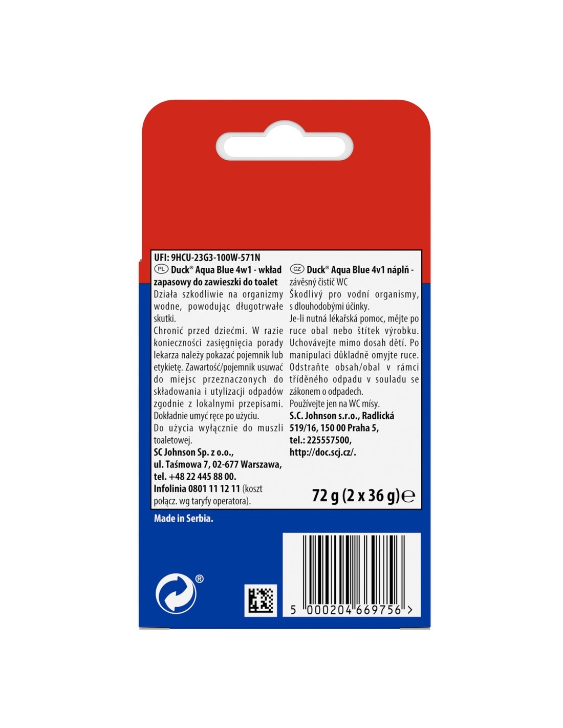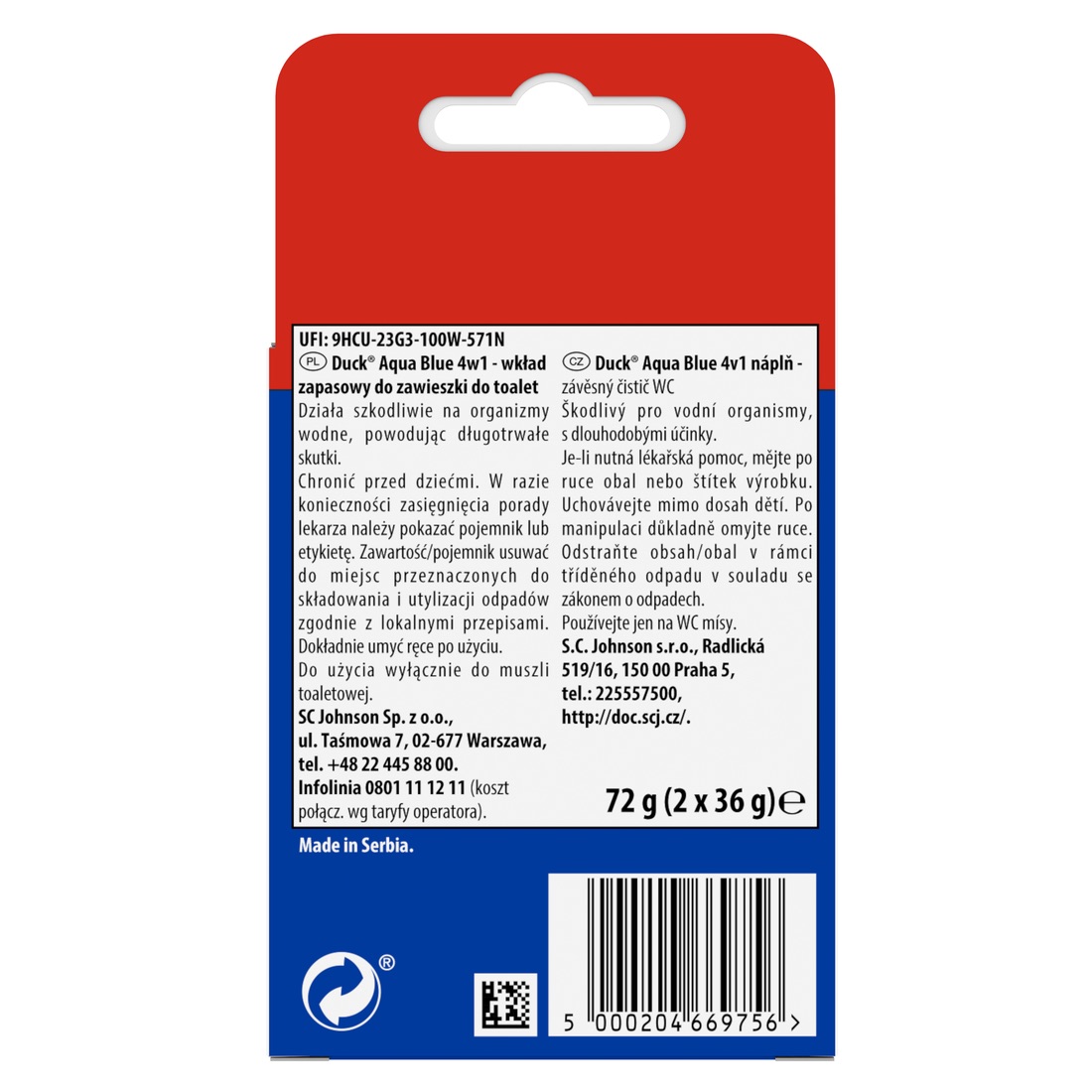 Sekret skuteczności Duck® Aqua Blue tkwi w zaawansowanej formule 4w1, która aktywuje się przy każdym kontakcie z wodą.
