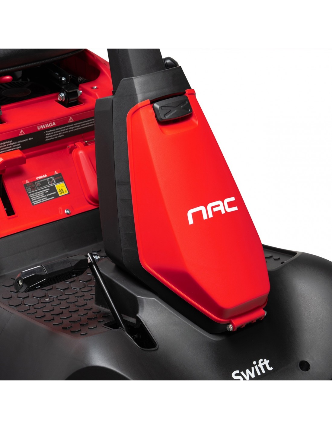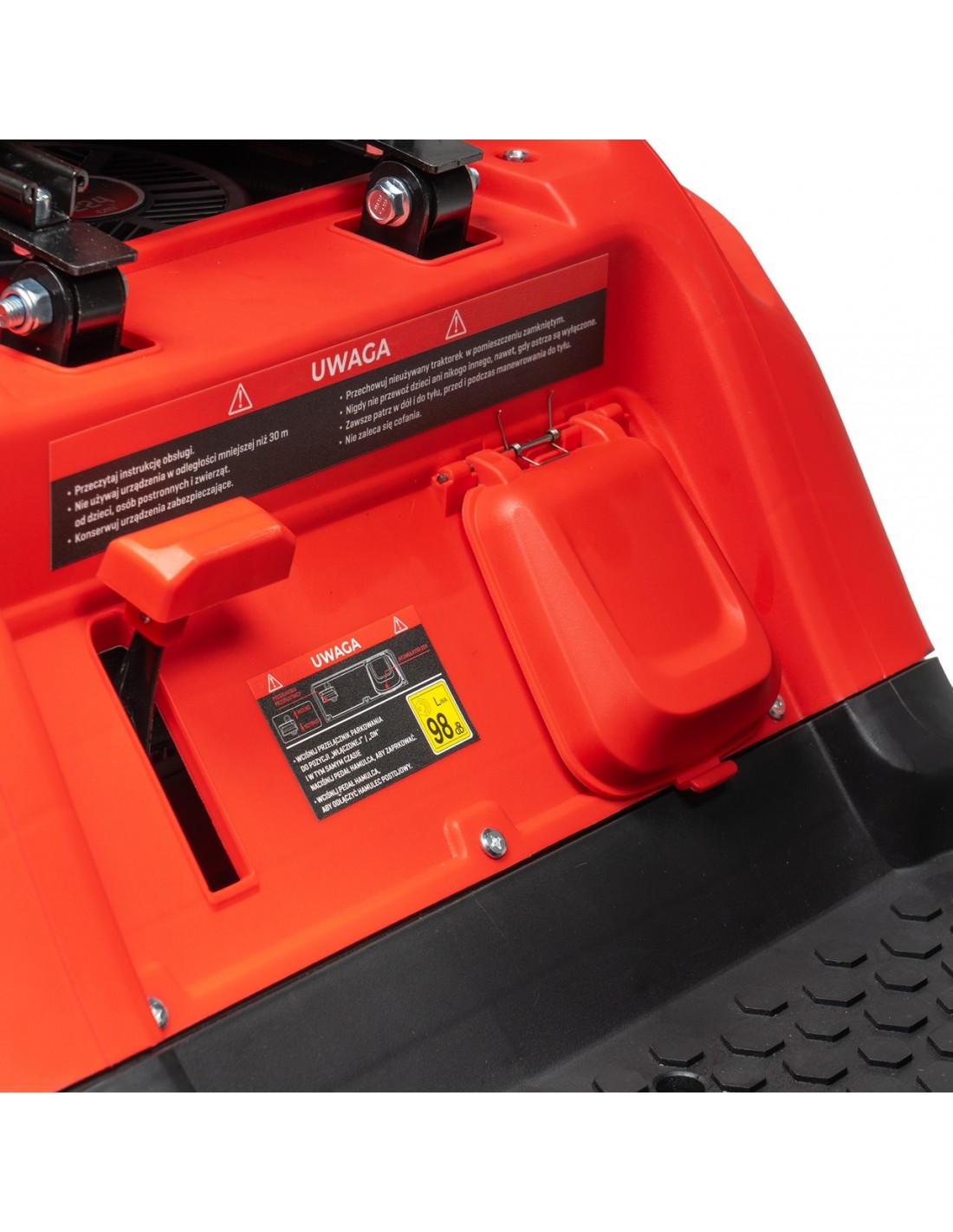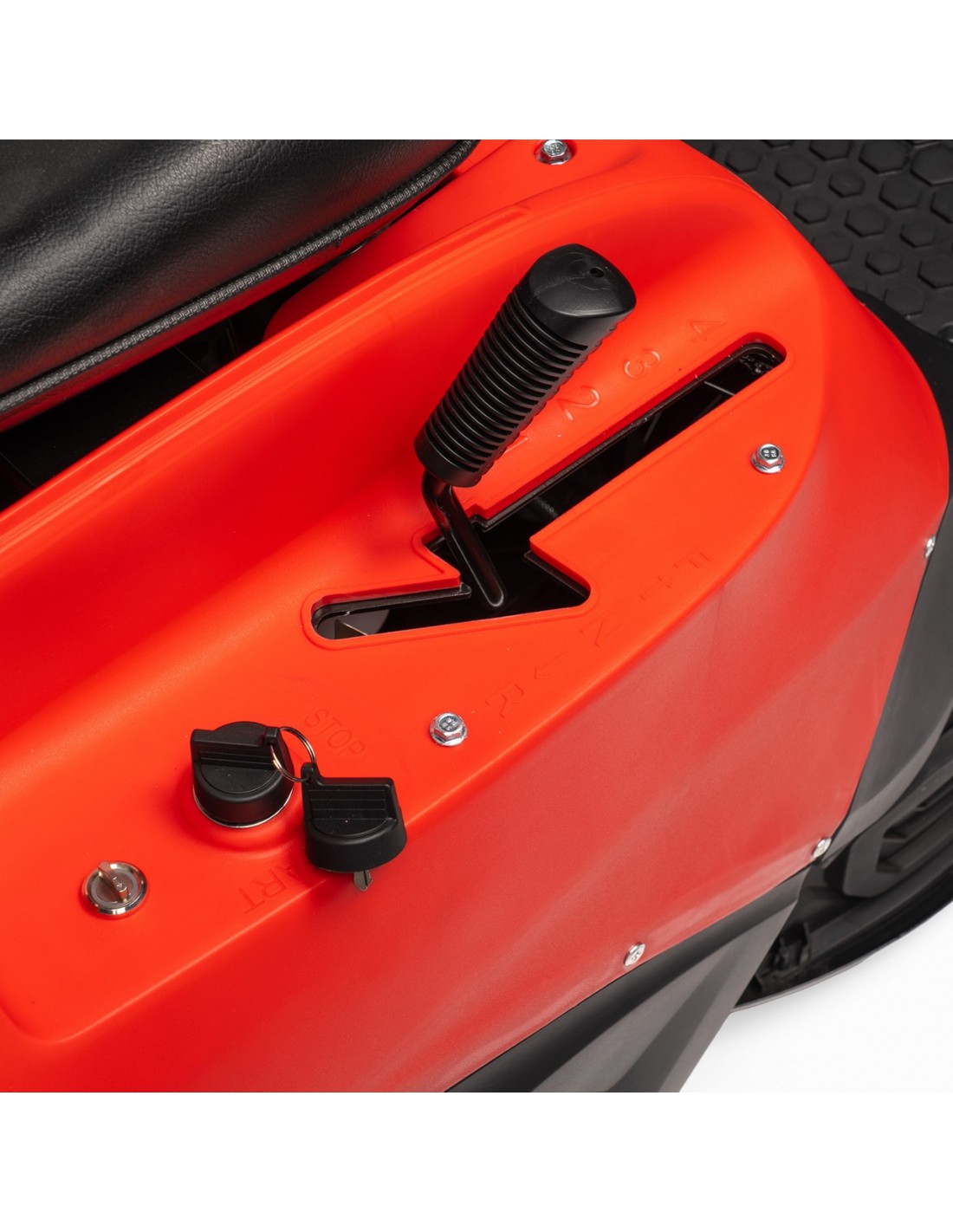 ✅ Wbudowany system bezpieczeństwa dba o to, by silnik automatycznie wyłączył się po kilku sekundach, gdy tylko operator opuści siedzisko podczas pracy maszyny.