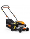Nie, ten model to kosiarka pchana (bez napędu). Dzięki temu jest jednak znacznie lżejsza (waży tylko 17,5 kg) i bardziej zwrotna. Jest to idealne rozwiązanie do ogrodów z dużą ilością krzewów, drzewek i ciasnych zakamarków, gdzie kosiarką z napędem trudniej manewrować.