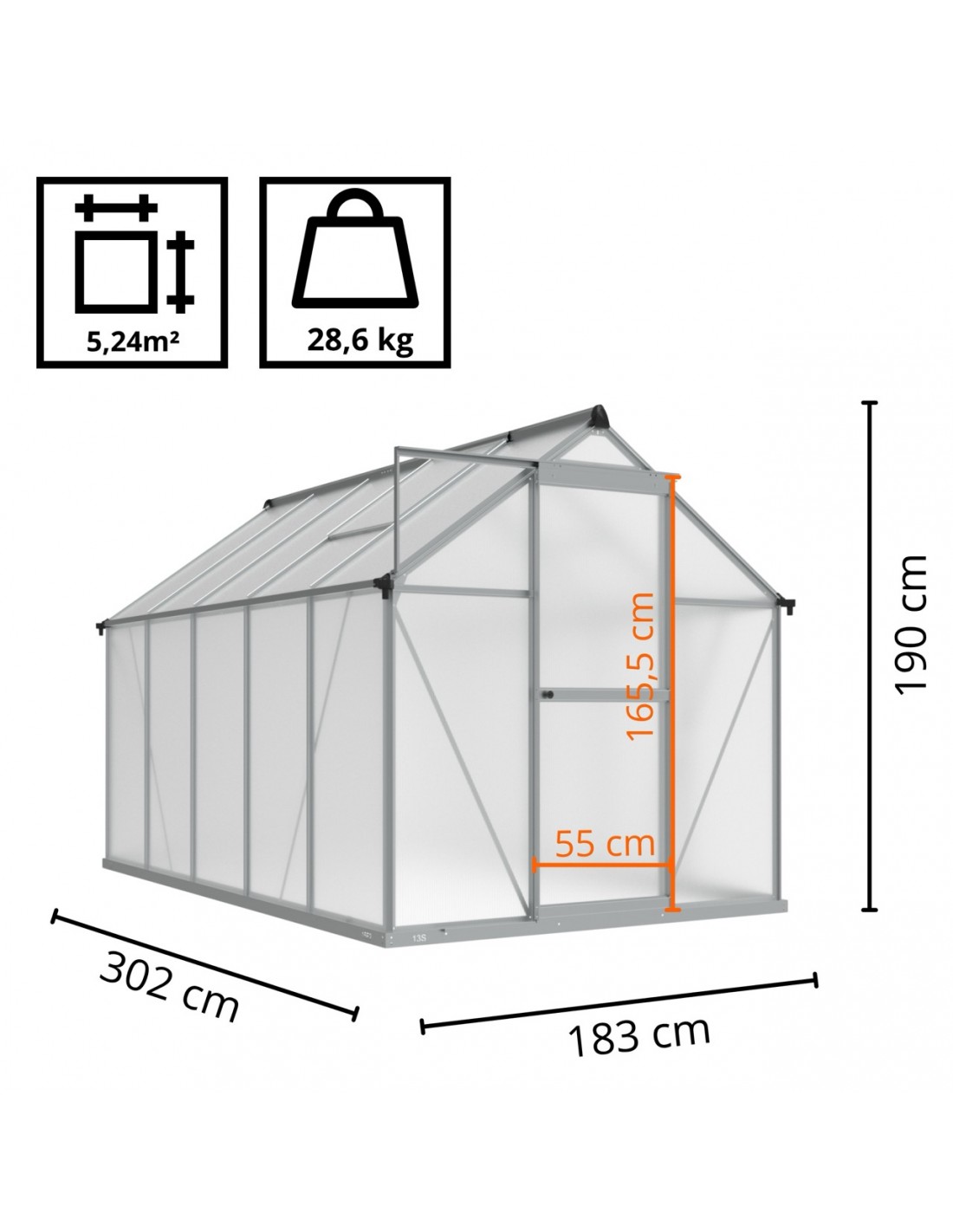 - Wymiary szklarni: 1830 x 3020 mm