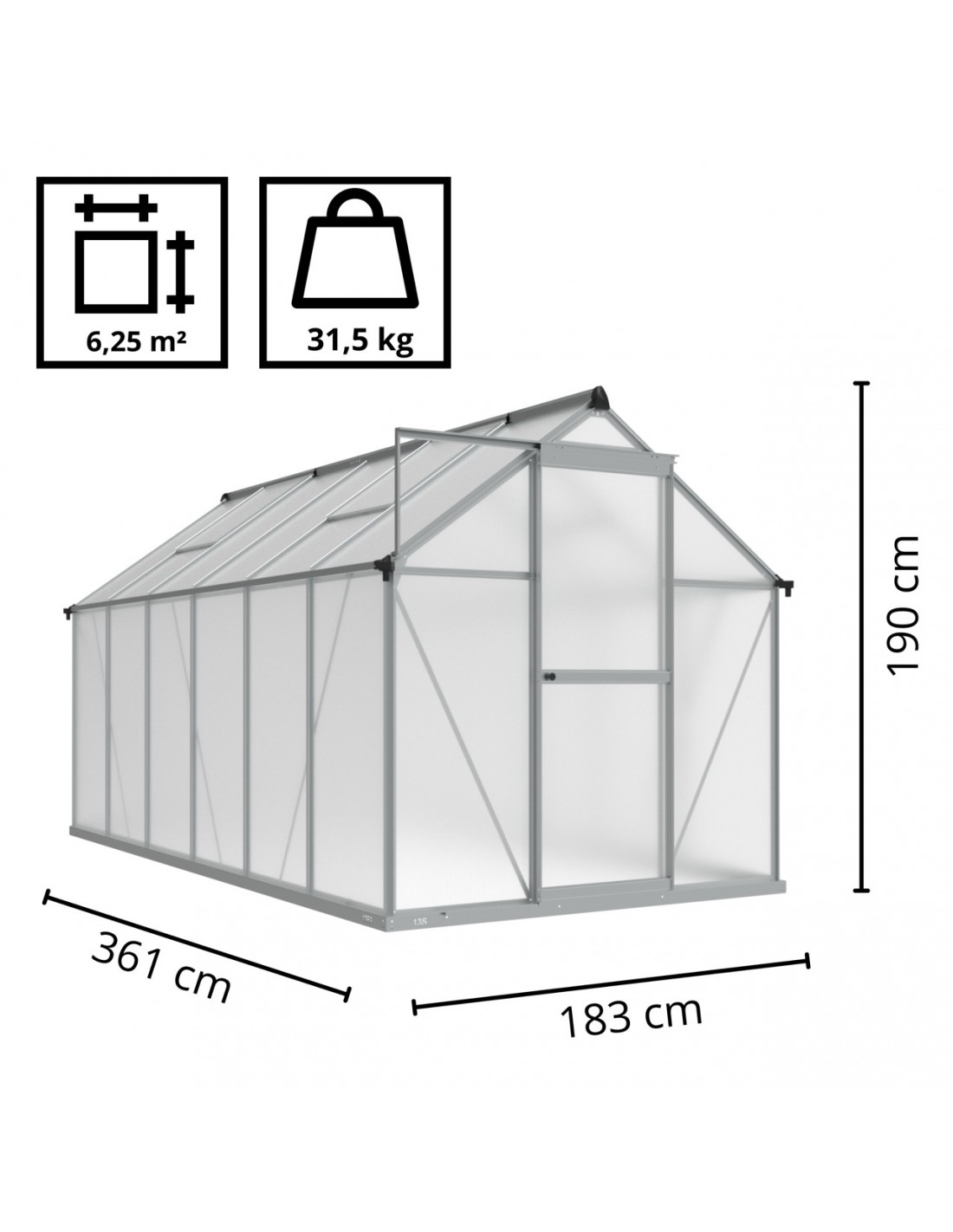 - Wymiary szklarni: 1830 x 3610 mm